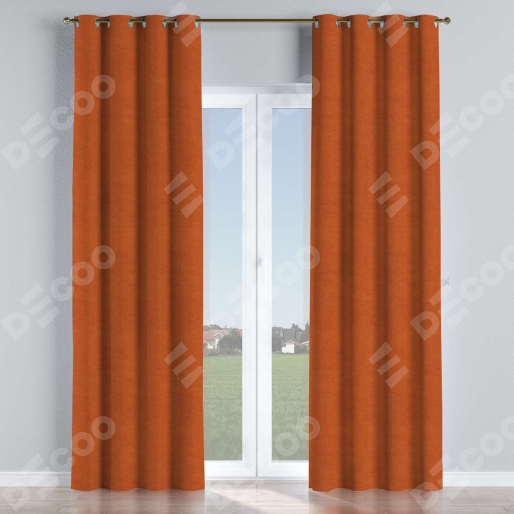 Комплект прямых штор, от производителя «Cortin», пошиты из ткани вельвет терракотовый, артикул ткани 85548. Данная модель пошита на люверсах, комплектуется на выбор круглым карнизом и подходит для монтажа на стену или потолок. Прямые шторы на люверсах шьются по стандарту с коэффициентом 1/2 (на 100 см. ширины проёма 200 см. ширины ткани), отличительным преимуществом данной модели является простой способ монтажа. Достаточно повесить ее на трубу и штора готова!