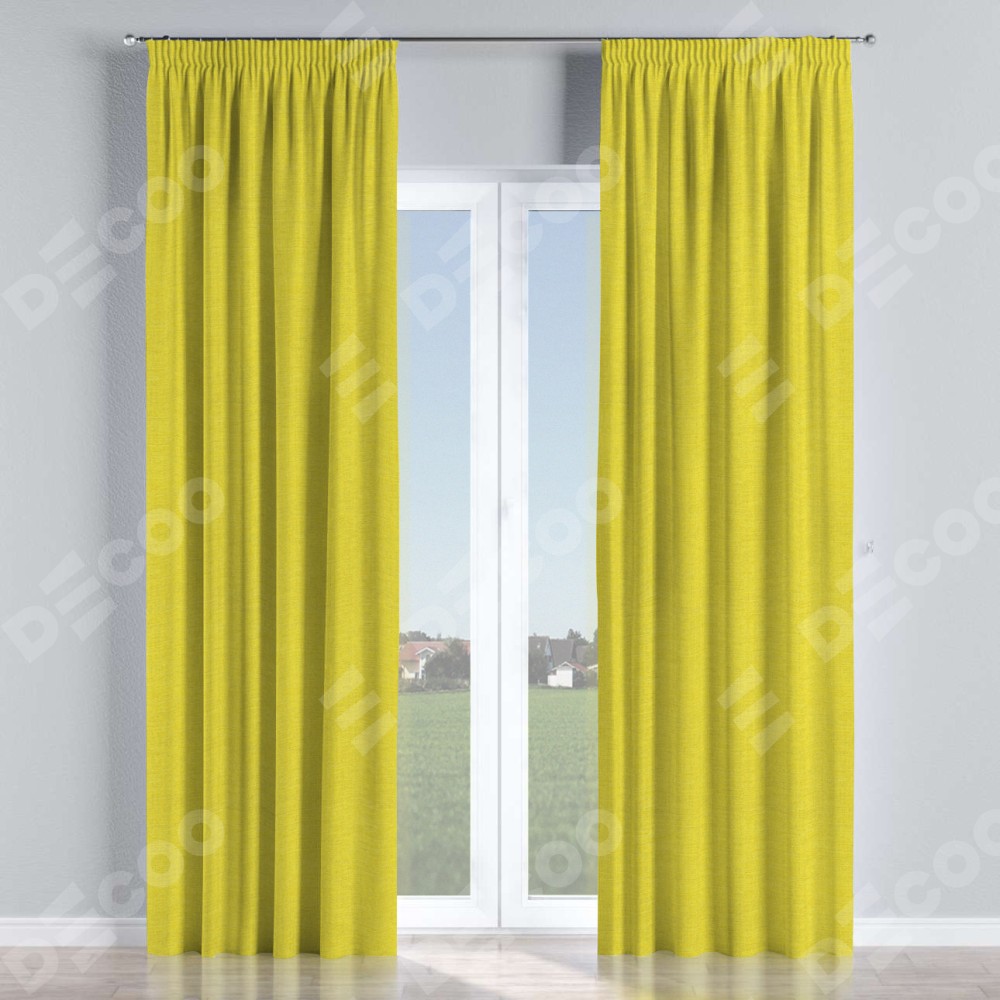 Комплект прямых штор, от производителя «Cortin», пошиты из ткани лён салатовый, артикул ткани 53437. С изнаночной стороны в верхней части штор пристрачивается шторная лента с декоративными складками «Карандаш». Для создания элегантных складок прямые шторы шьются по стандарту с коэффициентом 1:2 (на 100 см. ширины проёма 200 см. ширины ткани).