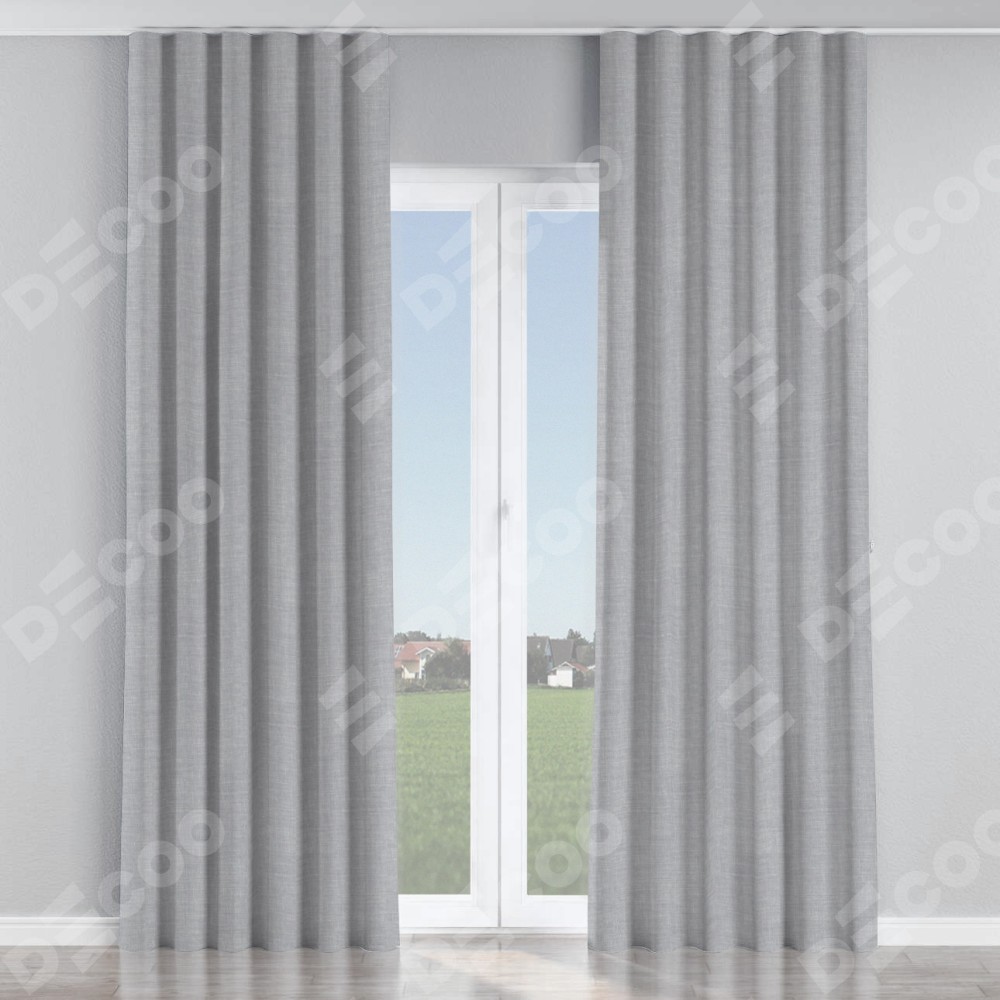 Комплект прямых штор, от производителя «Cortin», пошиты из ткани лён серый, артикул ткани 7440. С изнаночной стороны в верхней части штор пристрачивается шторная лента с декоративными складками «Волна». Для создания элегантных складок прямые шторы шьются по стандарту с коэффициентом 1:2 (на 100 см. ширины проёма 200 см. ширины ткани).