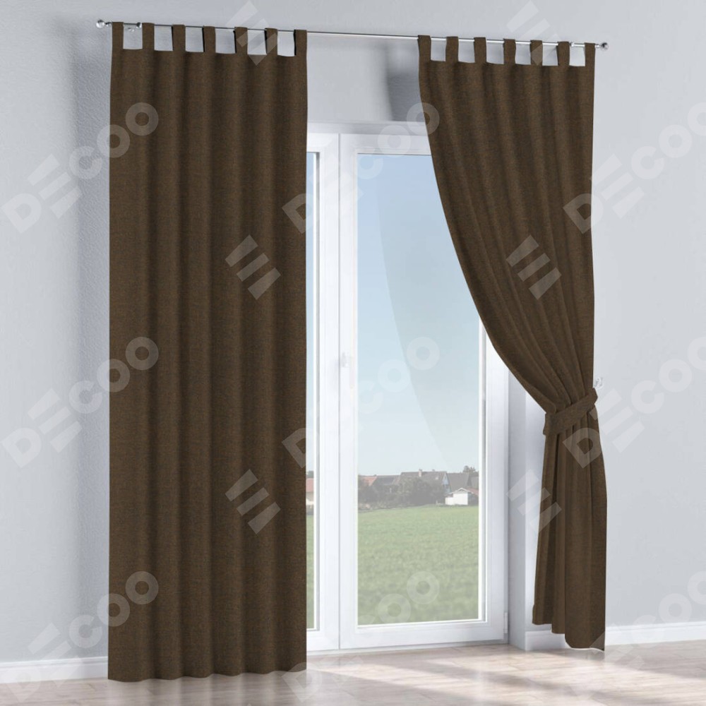 Комплект прямых штор, от производителя «Cortin», пошиты из ткани лён тёмно-коричневый, артикул ткани 53444. Данная модель пошита на петлях, комплектуется на выбор круглым карнизом и подходит для монтажа на стену или потолок. Прямые шторы на петлях шьются по стандарту с коэффициентом 1/2 (на 100 см. ширины проёма 200 см. ширины ткани), отличительным преимуществом данной модели является простой способ монтажа. Достаточно повесить ее на трубу и штора готова!