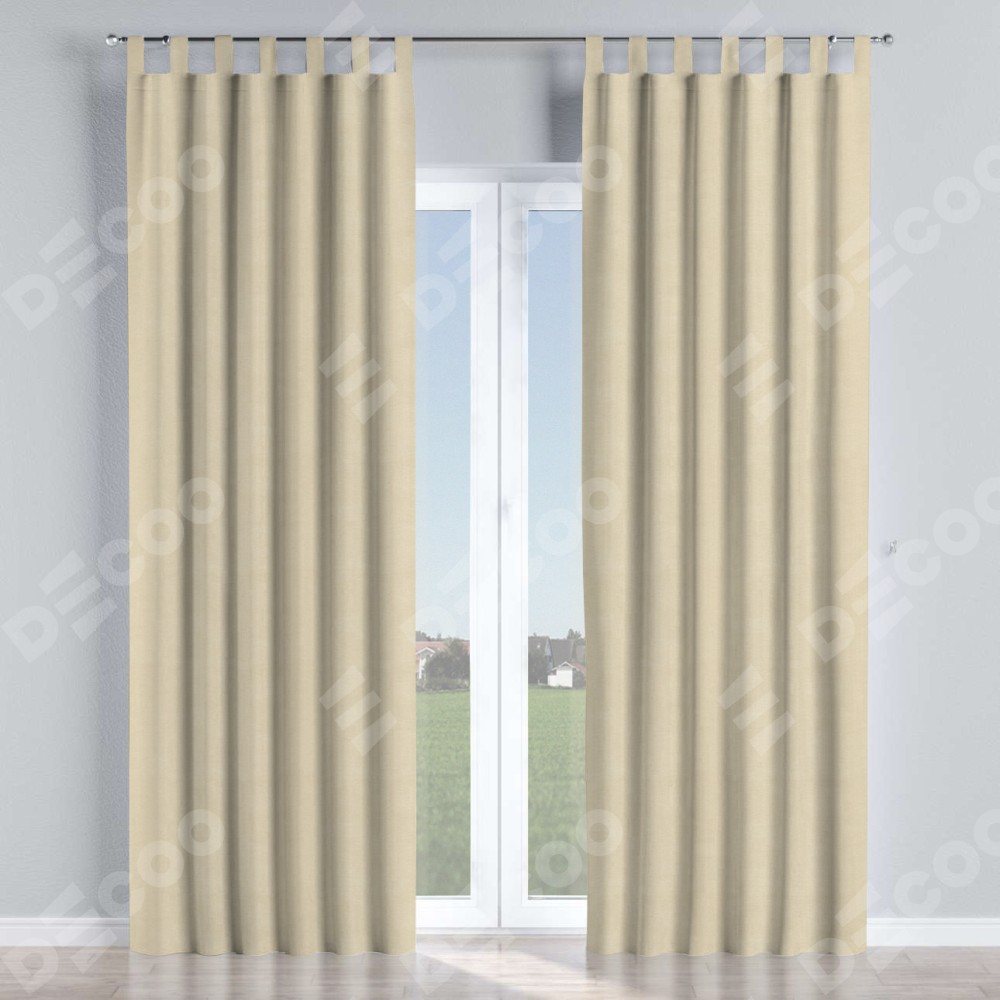 Комплект прямых штор, от производителя «Cortin», пошиты из ткани лён кашемир шампань, артикул ткани 17 205. Данная модель пошита на петлях, комплектуется на выбор круглым карнизом и подходит для монтажа на стену или потолок. Прямые шторы на петлях шьются по стандарту с коэффициентом 1/2 (на 100 см. ширины проёма 200 см. ширины ткани), отличительным преимуществом данной модели является простой способ монтажа. Достаточно повесить ее на трубу и штора готова!