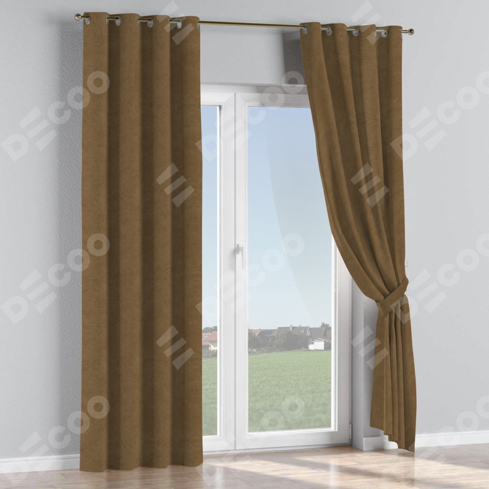 Комплект прямых штор, от производителя «Cortin», пошиты из ткани софт однотонный бронзовый, артикул ткани 33099. Данная модель пошита на люверсах, комплектуется на выбор круглым карнизом и подходит для монтажа на стену или потолок. Прямые шторы на люверсах шьются по стандарту с коэффициентом 1/2 (на 100 см. ширины проёма 200 см. ширины ткани), отличительным преимуществом данной модели является простой способ монтажа. Достаточно повесить ее на трубу и штора готова!