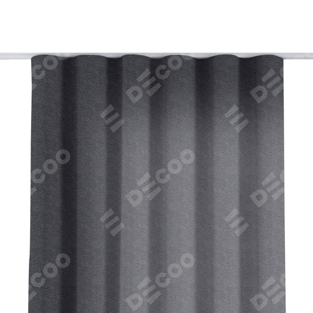 Комплект прямых штор, от производителя «Cortin», пошиты из ткани софт однотонный графит, артикул ткани 19316. С изнаночной стороны в верхней части штор пристрачивается шторная лента с декоративными складками «Волна». Для создания элегантных складок прямые шторы шьются по стандарту с коэффициентом 1:2 (на 100 см. ширины проёма 200 см. ширины ткани).
