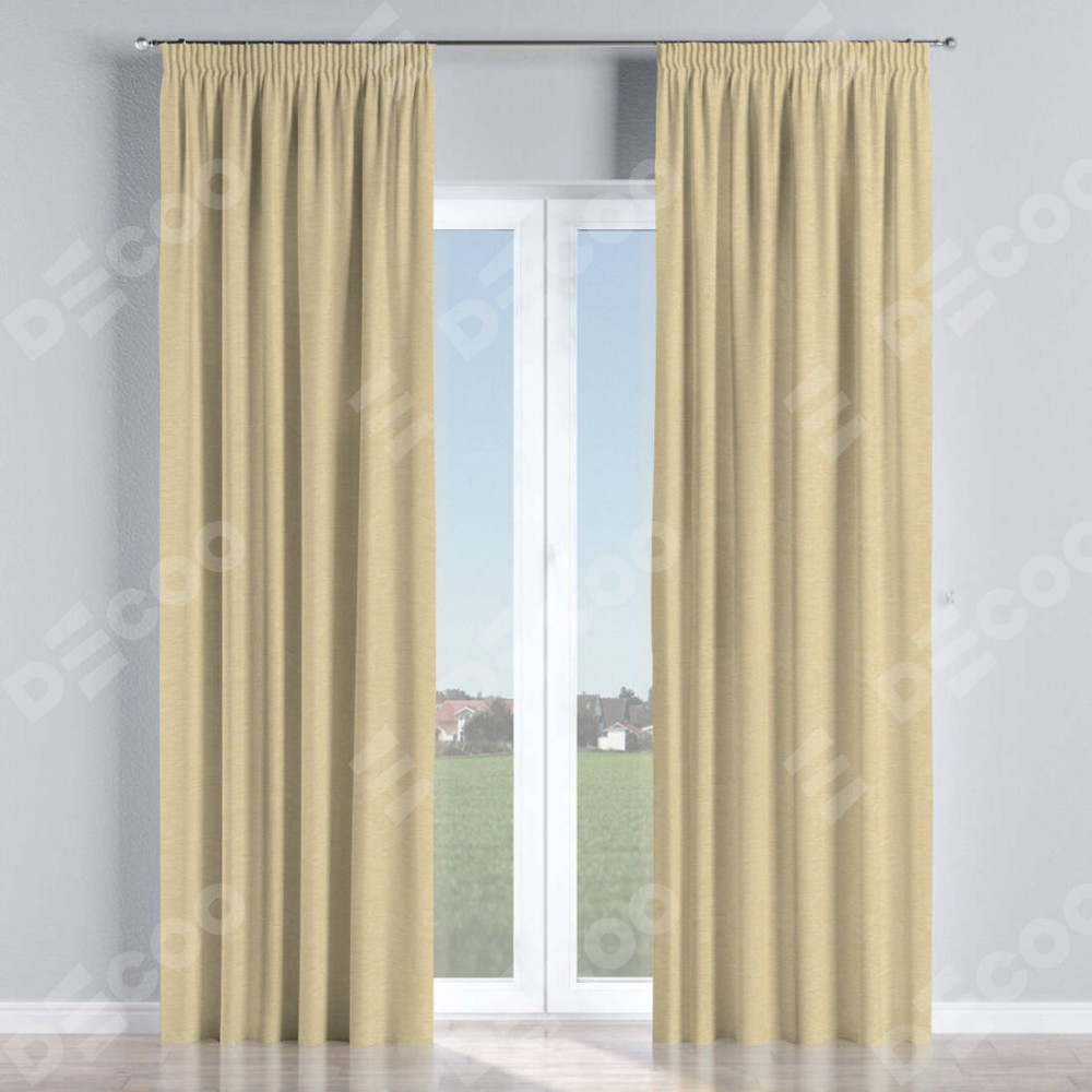 Комплект прямых штор, от производителя «Cortin», пошиты из ткани софт однотонный светло-бежевый, артикул ткани 54426. С изнаночной стороны в верхней части штор пристрачивается шторная лента с декоративными складками «Карандаш». Для создания элегантных складок прямые шторы шьются по стандарту с коэффициентом 1:2 (на 100 см. ширины проёма 200 см. ширины ткани).