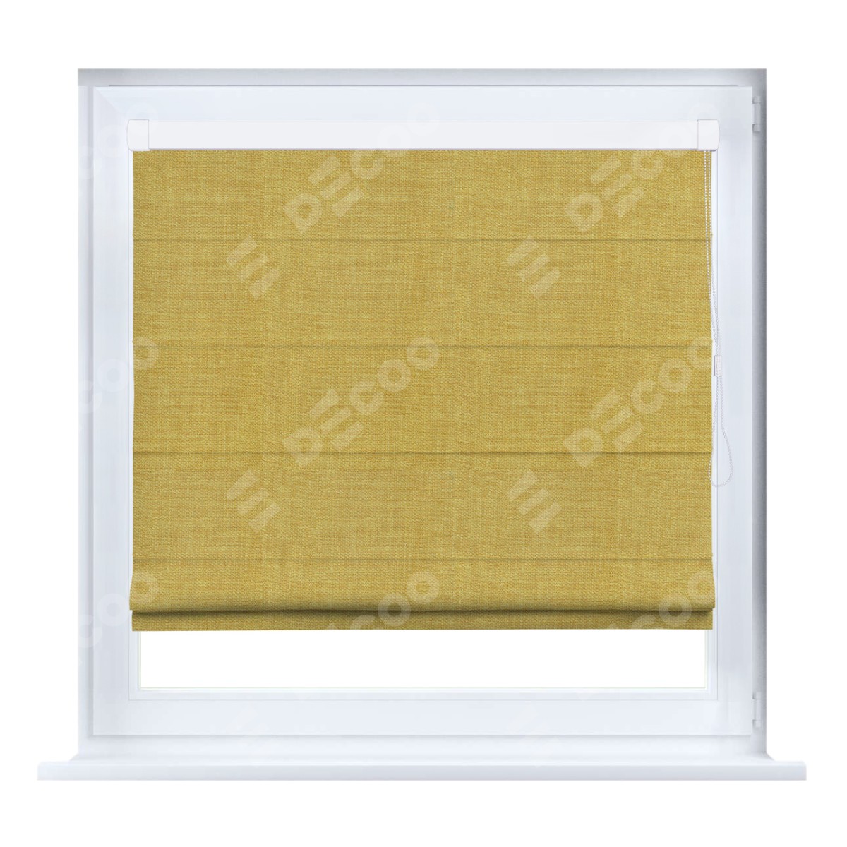 Римская штора кассетного типа, производителя «Cortin», устанавливается только на пластиковые окна и прилегает к стеклопакету, пошита из ткани лён горчичный, артикул 74740.