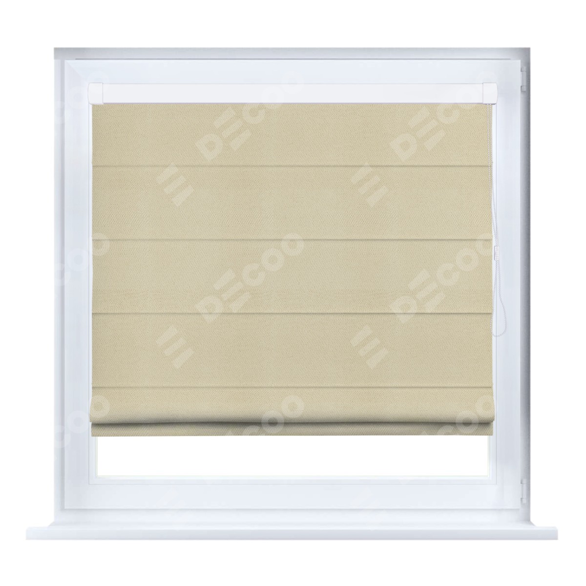 Римская штора кассетного типа, производителя «Cortin», устанавливается только на пластиковые окна и прилегает к стеклопакету, пошита из ткани блэкаут однотонный милано латте, артикул 05.