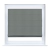 Римская штора кассетного типа, производителя «Cortin», устанавливается только на пластиковые окна и прилегает к стеклопакету, пошита из ткани блэкаут однотонный тёмно-серый, артикул 18077.