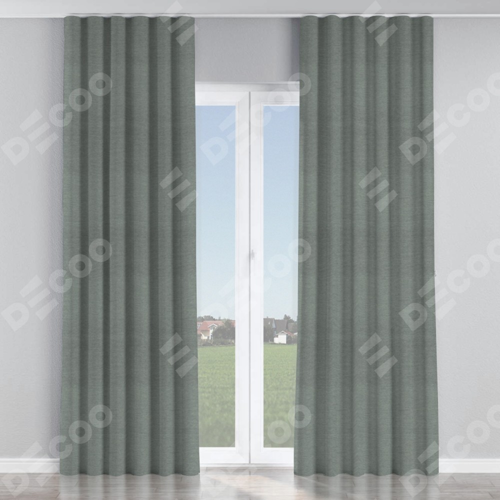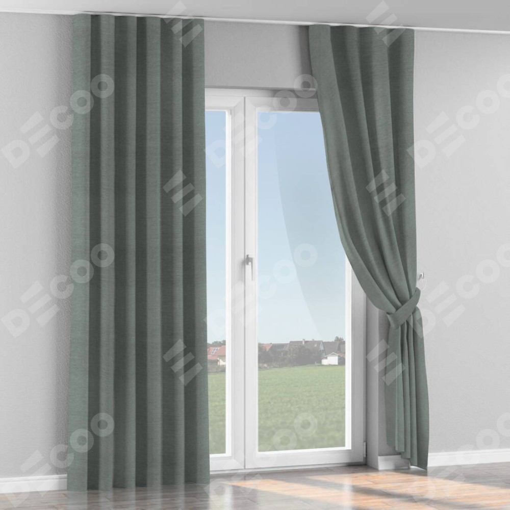 Комплект прямых штор, от производителя «Cortin», пошиты из ткани твид блэкаут серый, артикул ткани 21577. С изнаночной стороны в верхней части штор пристрачивается шторная лента с декоративными складками «Волна». Для создания элегантных складок прямые шторы шьются по стандарту с коэффициентом 1:2 (на 100 см. ширины проёма 200 см. ширины ткани).