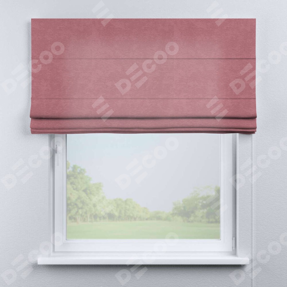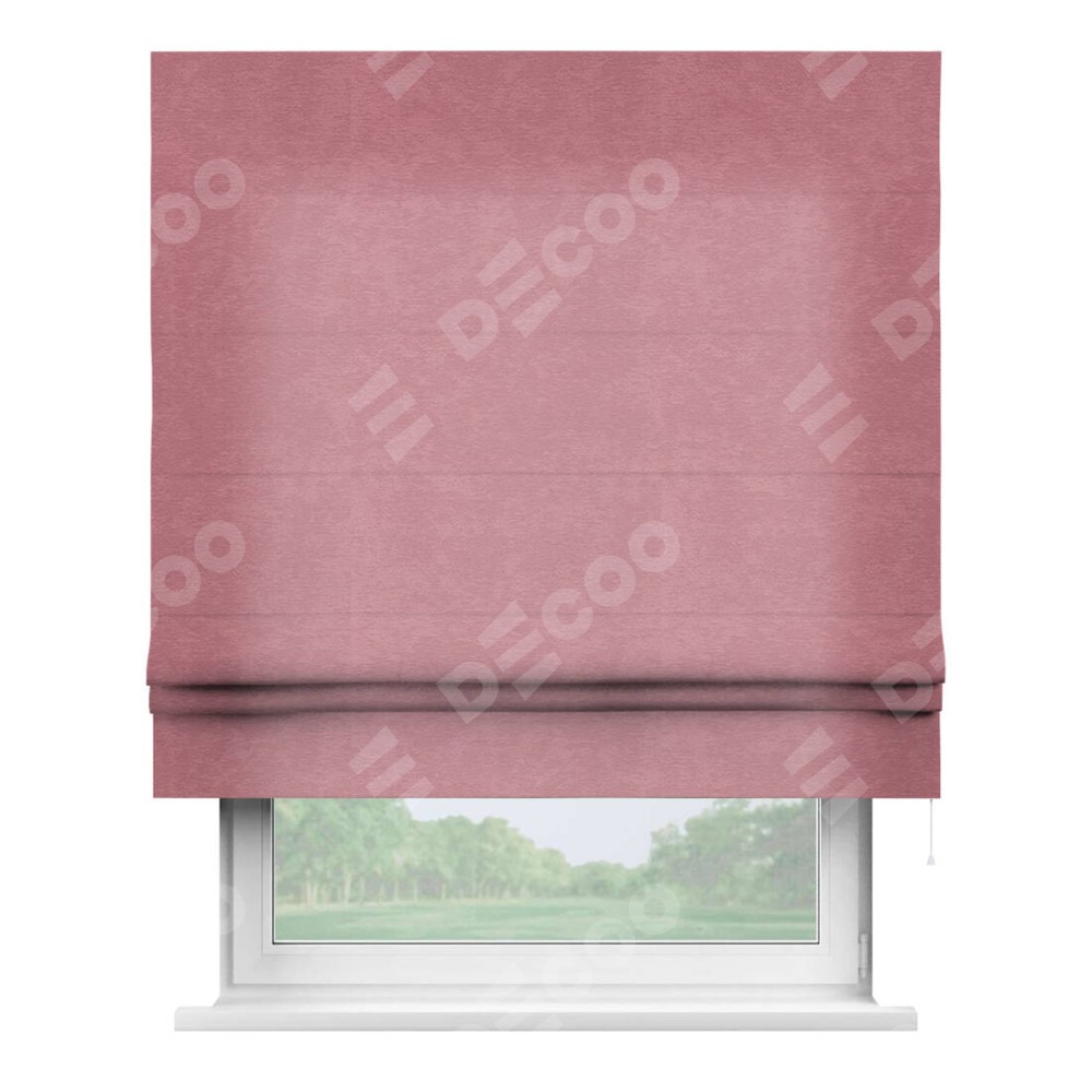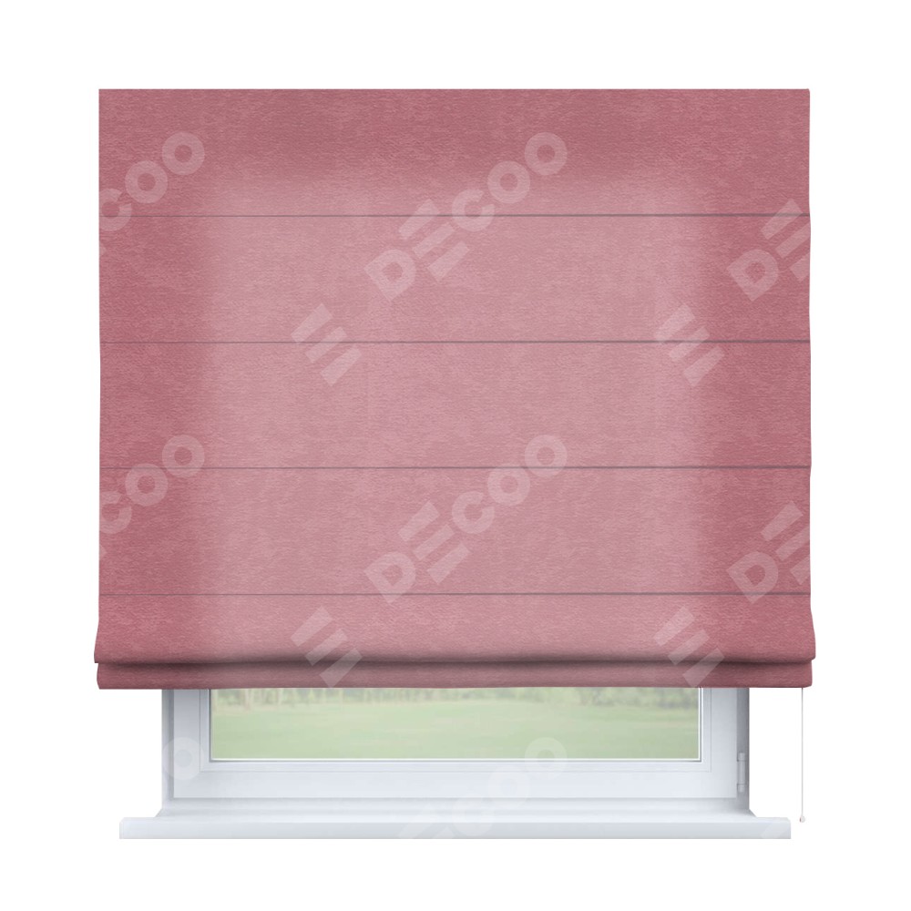 Римская штора производителя «Cortin», используется для проёма, пошита из ткани софт однотонный розовый, артикул ткани 42926. Имеет универсальный механизм и подходит для монтажа: на потолок, на стену и в нишу.