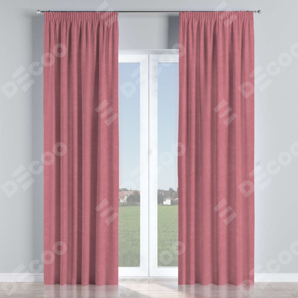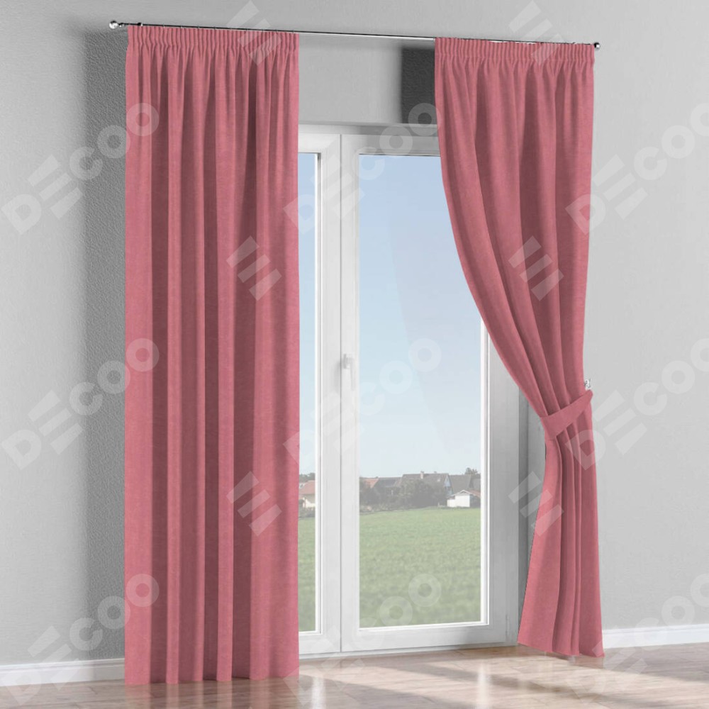Комплект прямых штор, от производителя «Cortin», пошиты из ткани софт однотонный розовый, артикул ткани 42926. С изнаночной стороны в верхней части штор пристрачивается шторная лента с декоративными складками «Карандаш». Для создания элегантных складок прямые шторы шьются по стандарту с коэффициентом 1:2 (на 100 см. ширины проёма 200 см. ширины ткани).