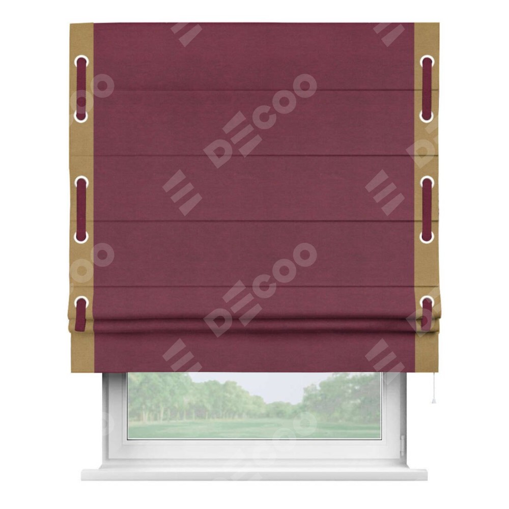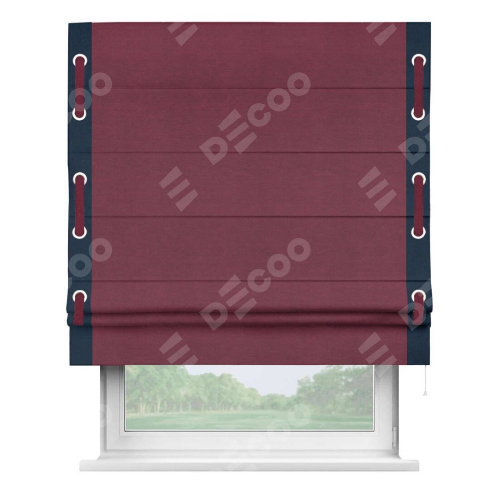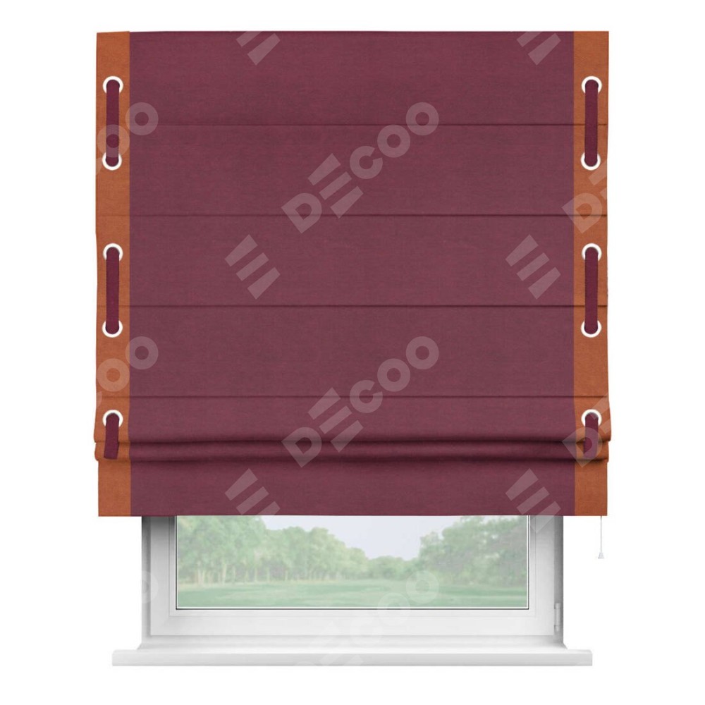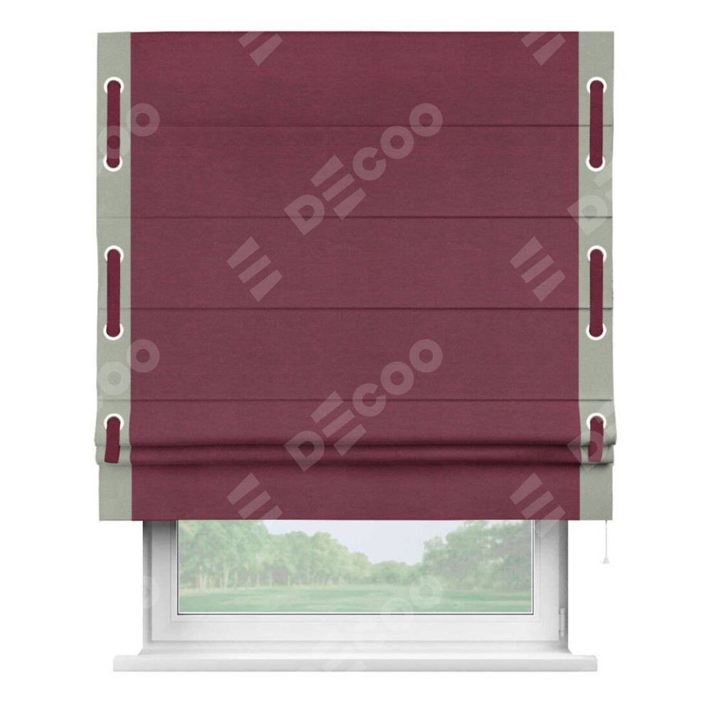 Римская штора «Кортин» с кантом Стрим Дуо (люверсы с пояском), для проема, ткань вельвет бордовый