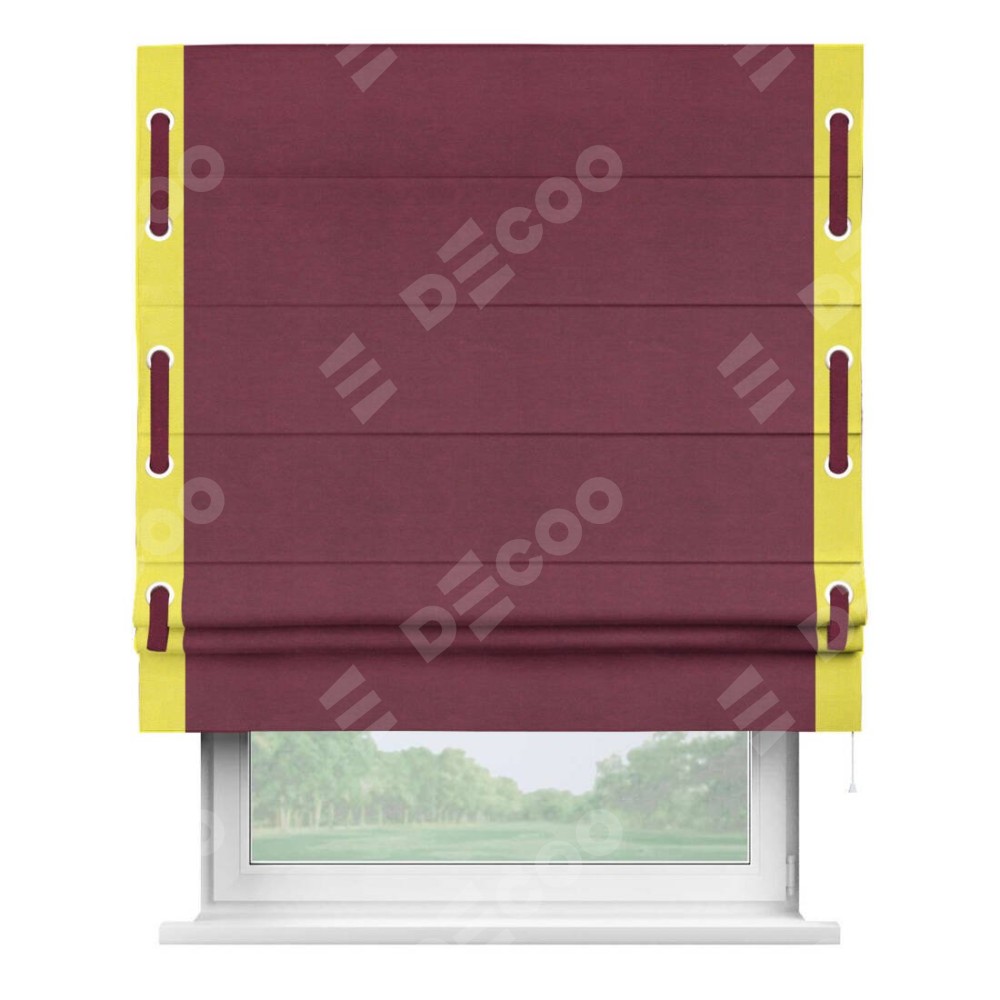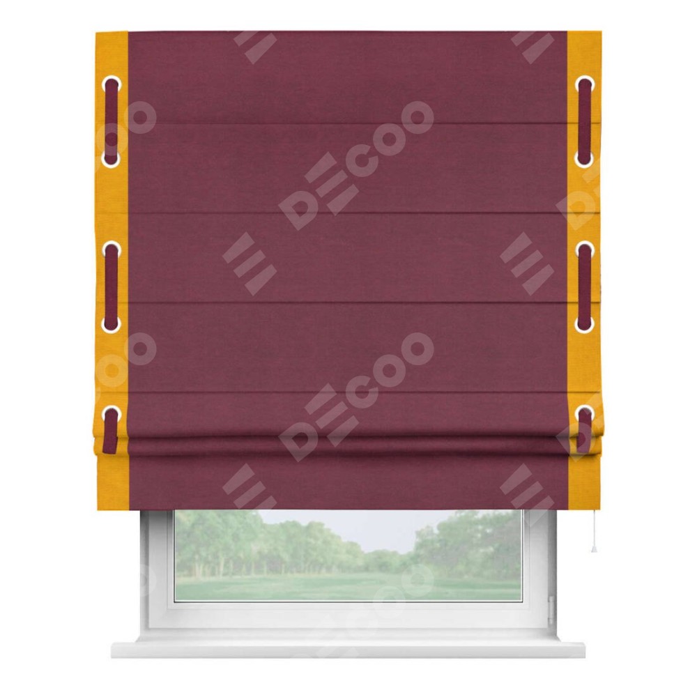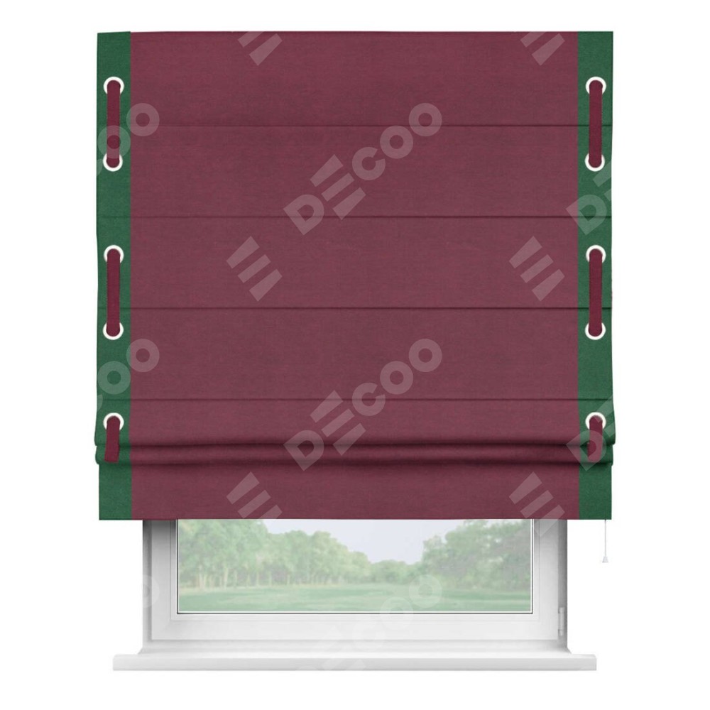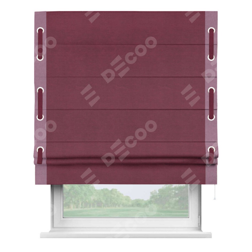 Римская штора «Кортин» с кантом Стрим Дуо (люверсы с пояском), для проема, ткань вельвет бордовый