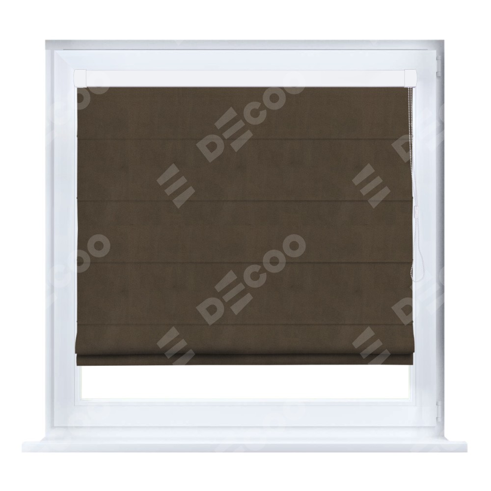Римская штора производителя «Cortin», устанавливается на створку окна, пошита из ткани бархат тёмно-коричневый, артикул 5017. Штора шьётся по индивидуальным размерам, для данного типа римской шторы возможная ширина от 35 до 150 см., высота до 250 см.