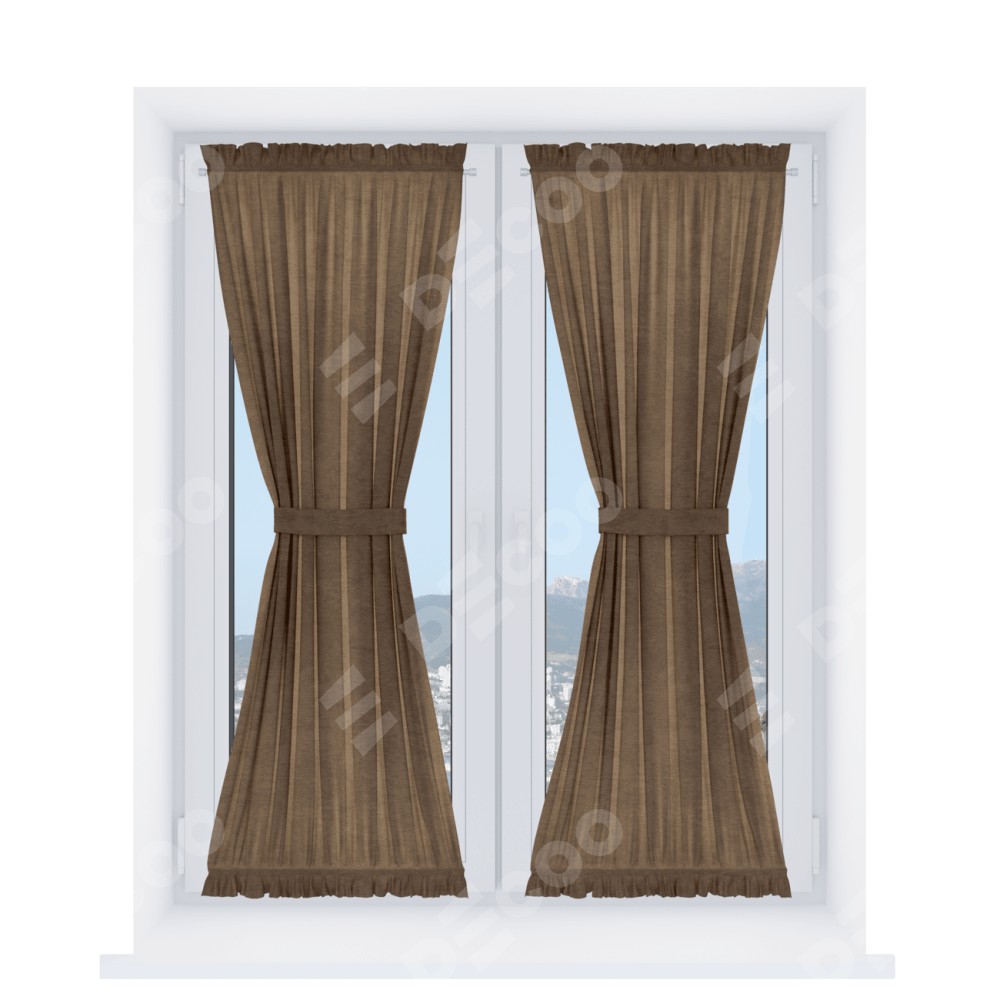 Штора «Песочные часы» производителя «Cortin», используется для створок окон и дверей, пошита из ткани софт однотонный бронзовый, артикул ткани 33099.