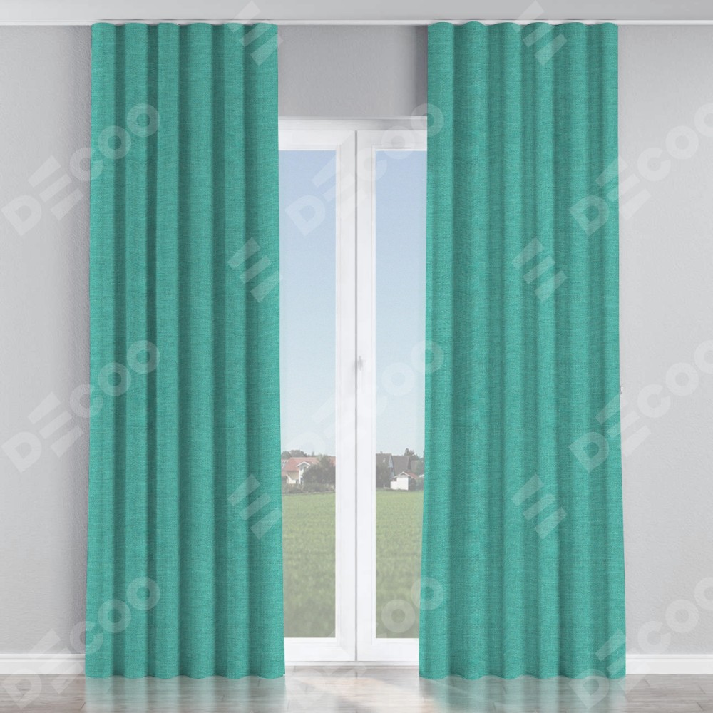 Комплект прямых штор, от производителя «Cortin», пошиты из ткани лён изумрудный, артикул ткани 85908. С изнаночной стороны в верхней части штор пристрачивается шторная лента с декоративными складками «Волна». Для создания элегантных складок прямые шторы шьются по стандарту с коэффициентом 1:2 (на 100 см. ширины проёма 200 см. ширины ткани).