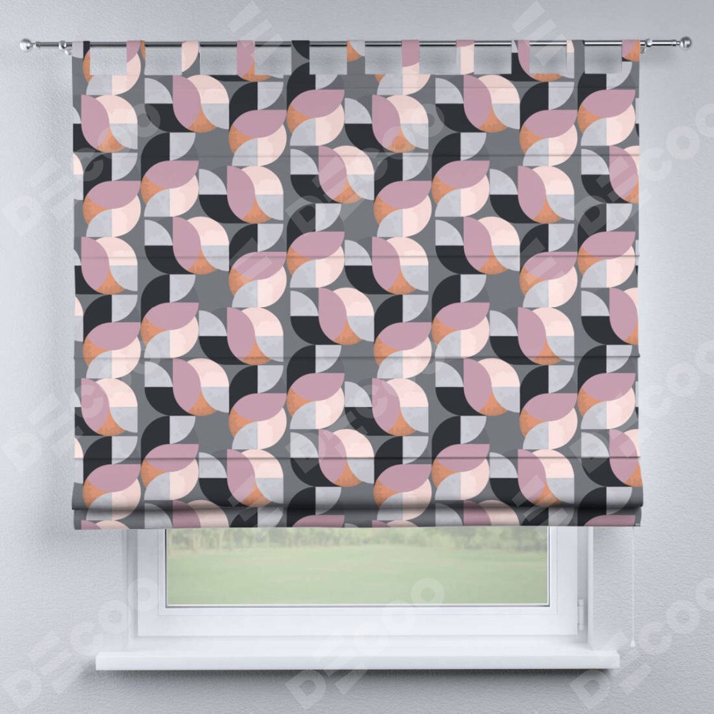 Римская штора производителя «Cortin», используется для проёма, пошита из ткани блэкаут с нанесением сублимационной печати «Абстрактный узор». Данная модель пошита на петлях, комплектуется на выбор круглым карнизом и подходит для монтажа на стену. Римская штора на петлях имеет простую систему регулировки высоты, отличительным преимуществом данной модели является простой способ монтажа. Достаточно повесить ее на трубу и штора готова!