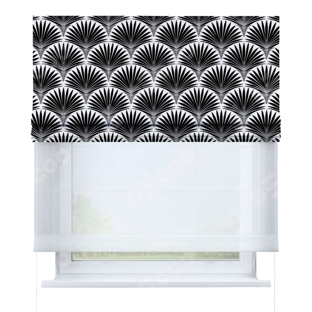 Римская штора «Кортин» день-ночь «Арт-деко листья черный»