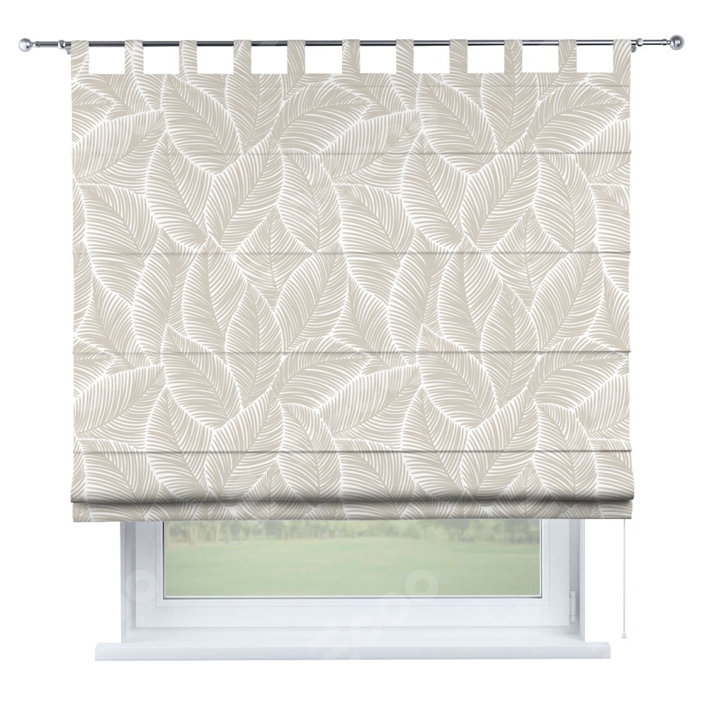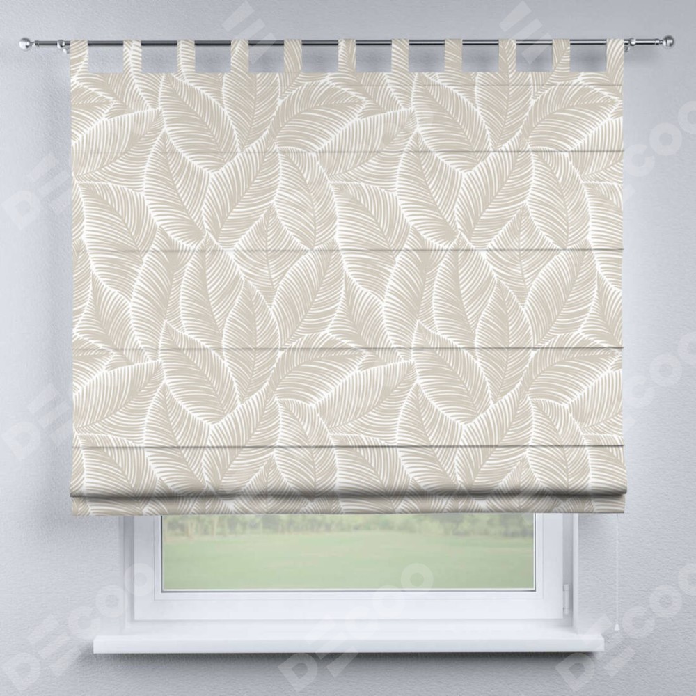 Римская штора производителя «Cortin», используется для проёма, пошита из ткани блэкаут с нанесением сублимационной печати «Бежевые листья». Данная модель пошита на петлях, комплектуется на выбор круглым карнизом и подходит для монтажа на стену. Римская штора на петлях имеет простую систему регулировки высоты, отличительным преимуществом данной модели является простой способ монтажа. Достаточно повесить ее на трубу и штора готова!