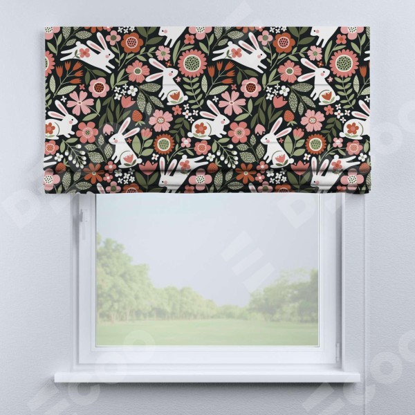 Римская штора «Кортин» для проема «Зайчики в цветнике»