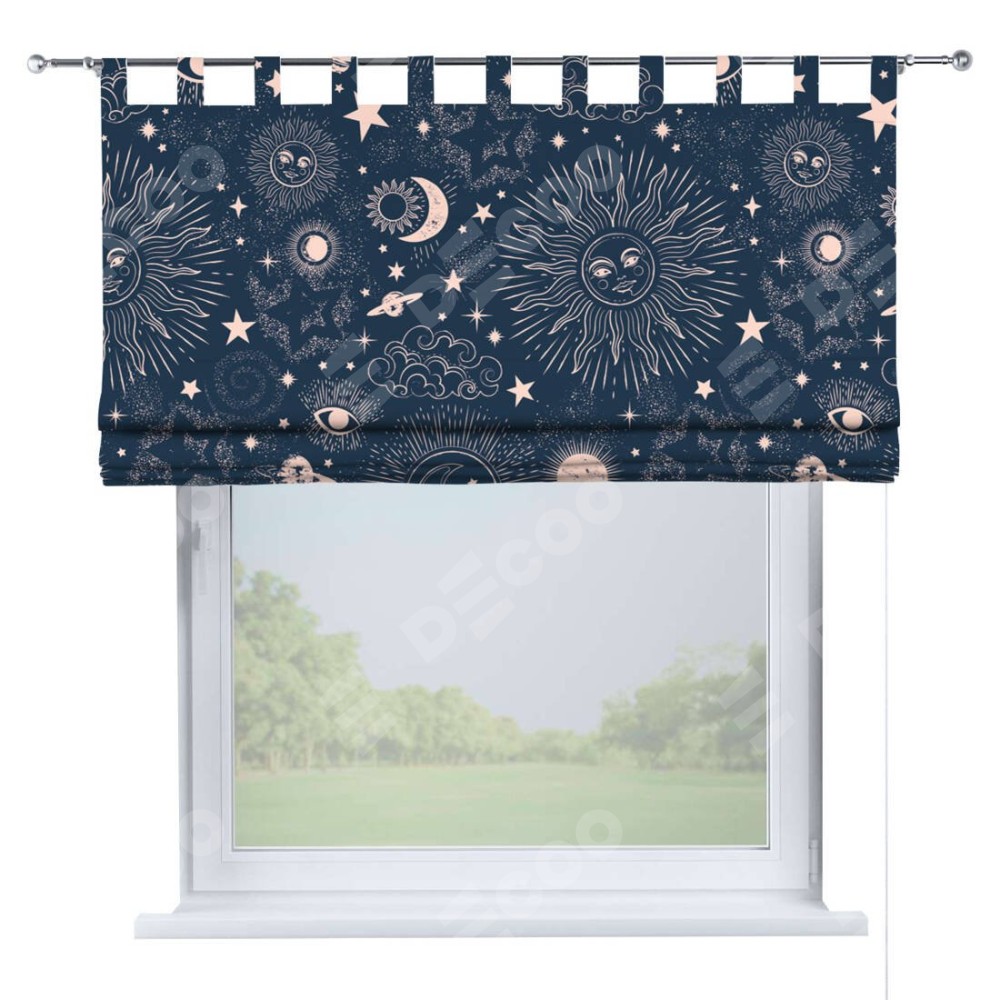Римская штора производителя «Cortin», используется для проёма, пошита из ткани блэкаут с нанесением сублимационной печати «Звёзды и планеты». Данная модель пошита на петлях, комплектуется на выбор круглым карнизом и подходит для монтажа на стену. Римская штора на петлях имеет простую систему регулировки высоты, отличительным преимуществом данной модели является простой способ монтажа. Достаточно повесить ее на трубу и штора готова!