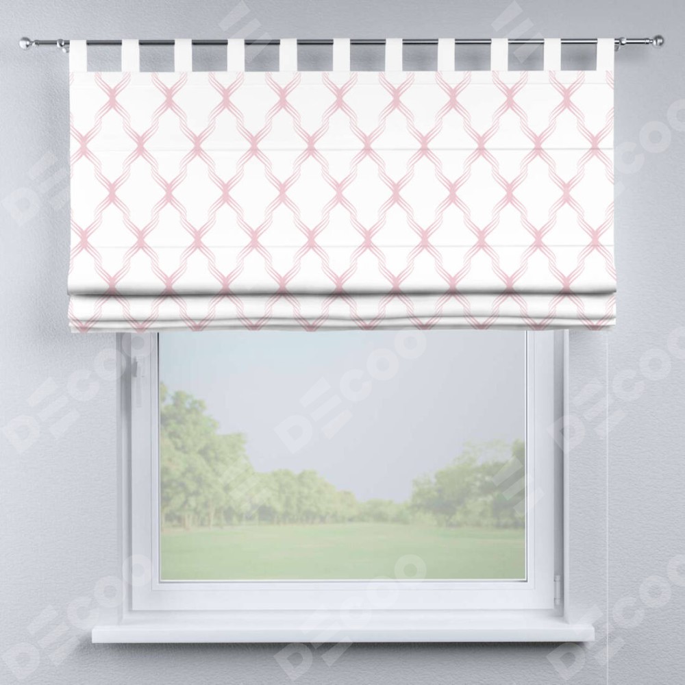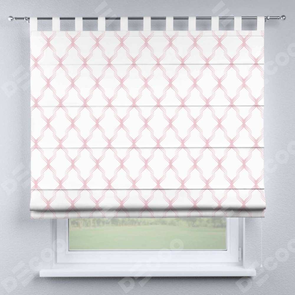 Римская штора производителя «Cortin», используется для проёма, пошита из ткани блэкаут с нанесением сублимационной печати «Розовые ромбы». Данная модель пошита на петлях, комплектуется на выбор круглым карнизом и подходит для монтажа на стену. Римская штора на петлях имеет простую систему регулировки высоты, отличительным преимуществом данной модели является простой способ монтажа. Достаточно повесить ее на трубу и штора готова!