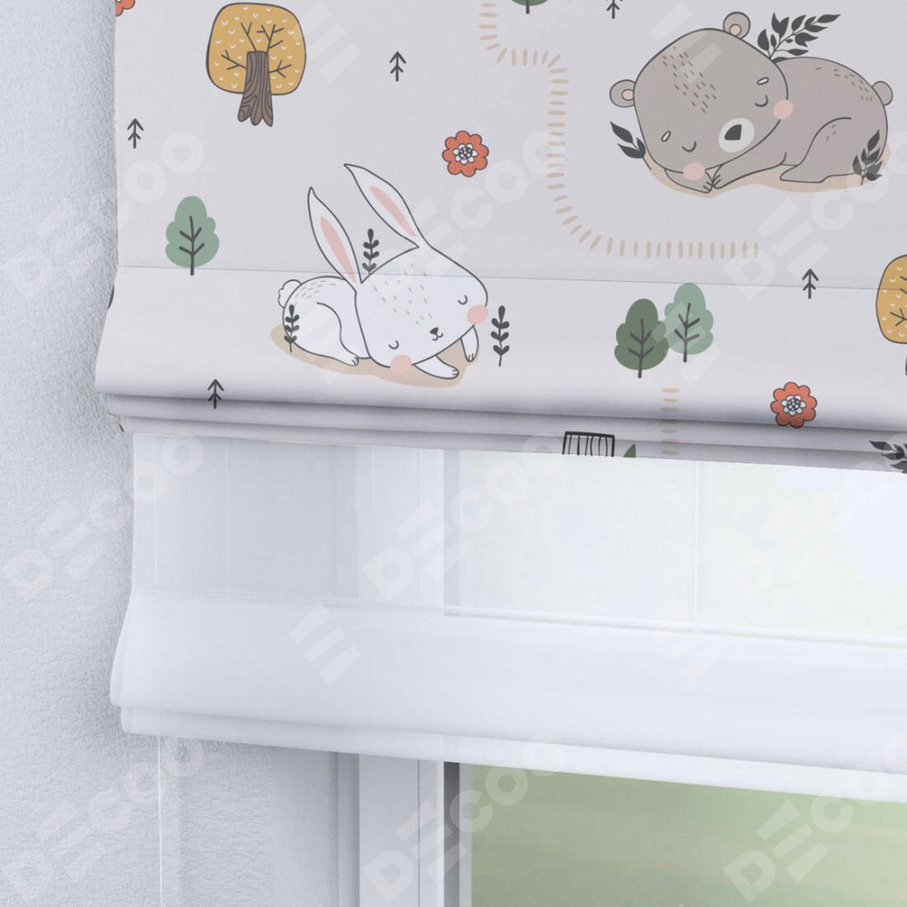 Римская штора день-ночь производителя «Cortin», используется для проёма, пошита из двух полотен, с лицевой блэкаут с нанесением сублимационной печати «Сладкие сны», вторая ткань тюль (по стандарту комплектуется тюль белого цвета артикул V-01). Имеет универсальный механизм и подходит для монтажа: на потолок, на стену и в нишу.