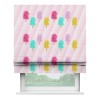 Римская штора производителя «Cortin», используется для проёма, пошита из ткани блэкаут с нанесением сублимационной печати «Фруктовое мороженое». Имеет универсальный механизм и подходит для монтажа: на потолок, на стену и в нишу.