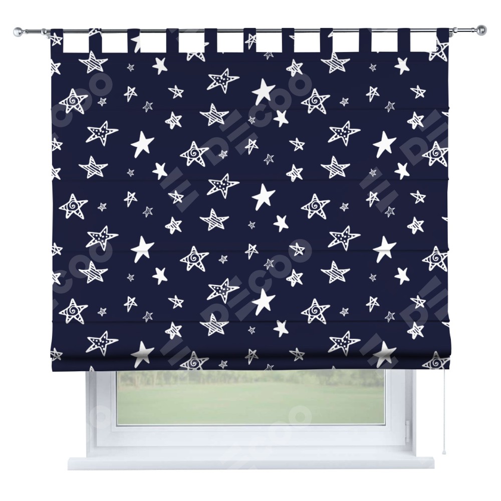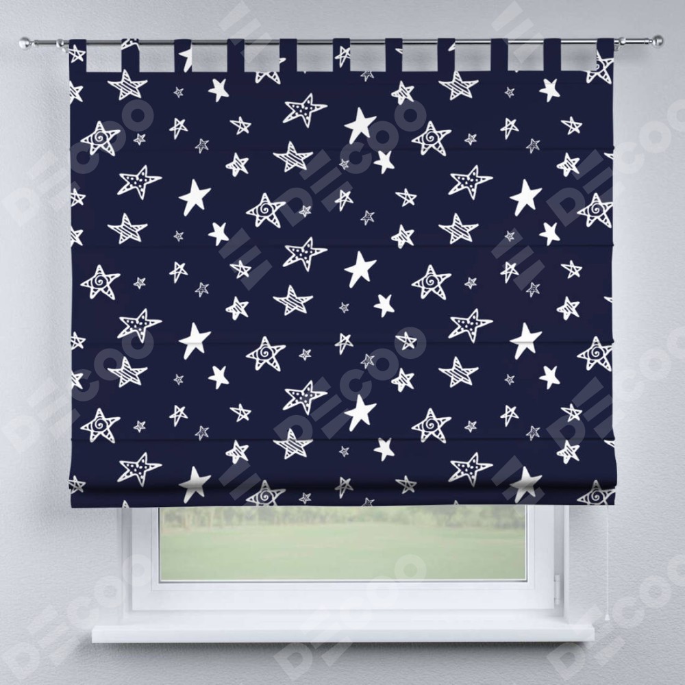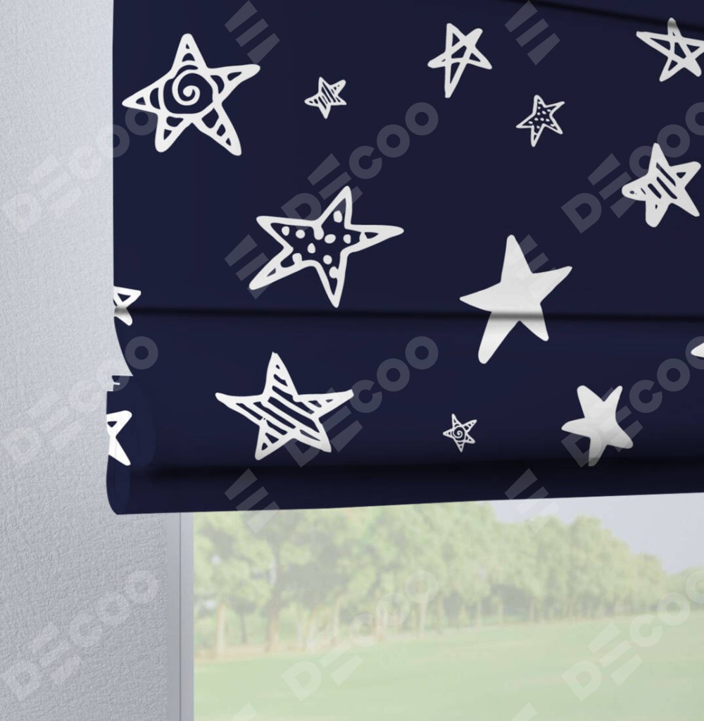 Римская штора производителя «Cortin», используется для проёма, пошита из ткани блэкаут с нанесением сублимационной печати «Ночные звёзды». Данная модель пошита на петлях, комплектуется на выбор круглым карнизом и подходит для монтажа на стену. Римская штора на петлях имеет простую систему регулировки высоты, отличительным преимуществом данной модели является простой способ монтажа. Достаточно повесить ее на трубу и штора готова!