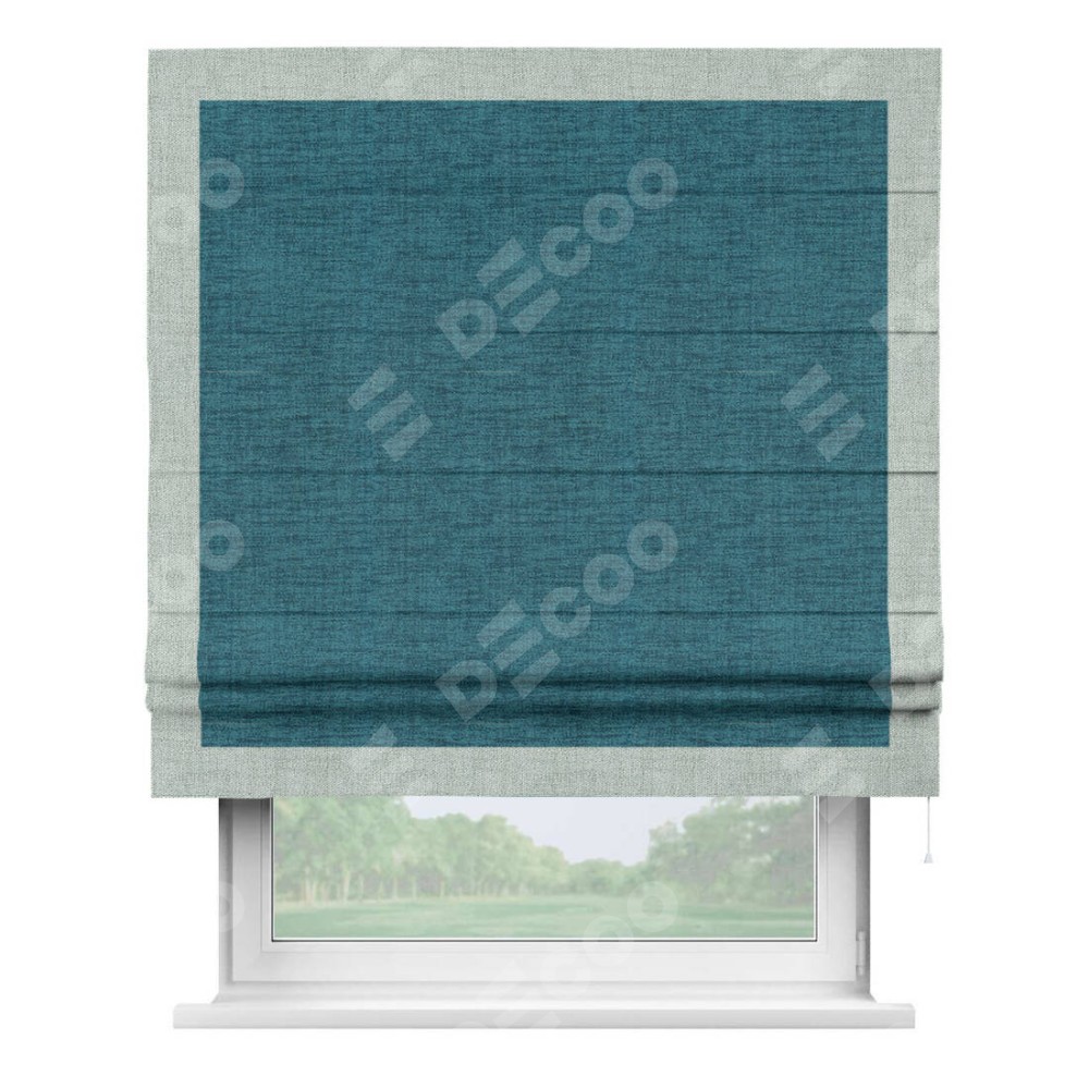 Римская штора «Кортин» с кантом Чесс, для проема, ткань рогожка димаут, синий