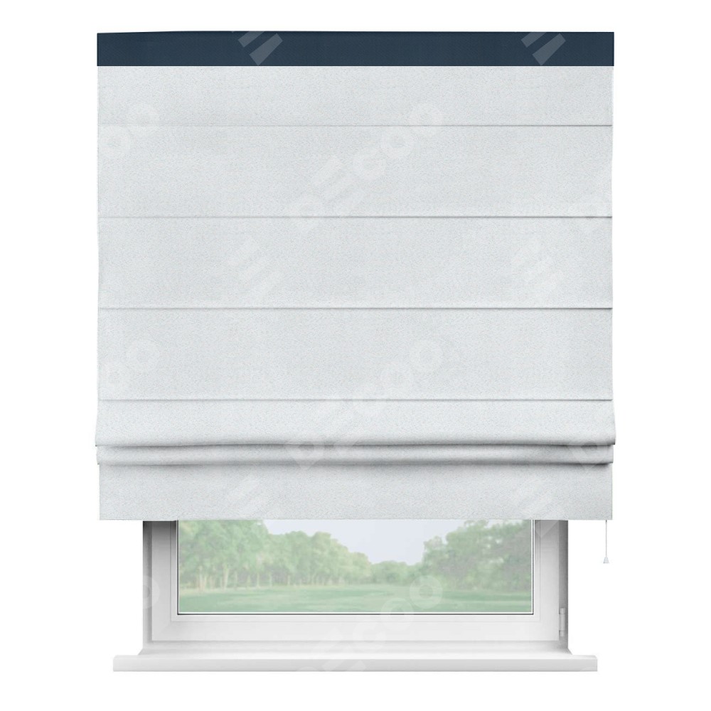 Римская штора производителя «Cortin», используется для проёма, пошита из ткани блэкаут однотонный дымчато-белый, артикул ткани 101. Отделка шторы кантом «Кинг», ткань для канта используется из блэкаута однотонного разной расцветки на выбор. Имеет универсальный механизм и подходит для монтажа: на потолок, на стену и в нишу.