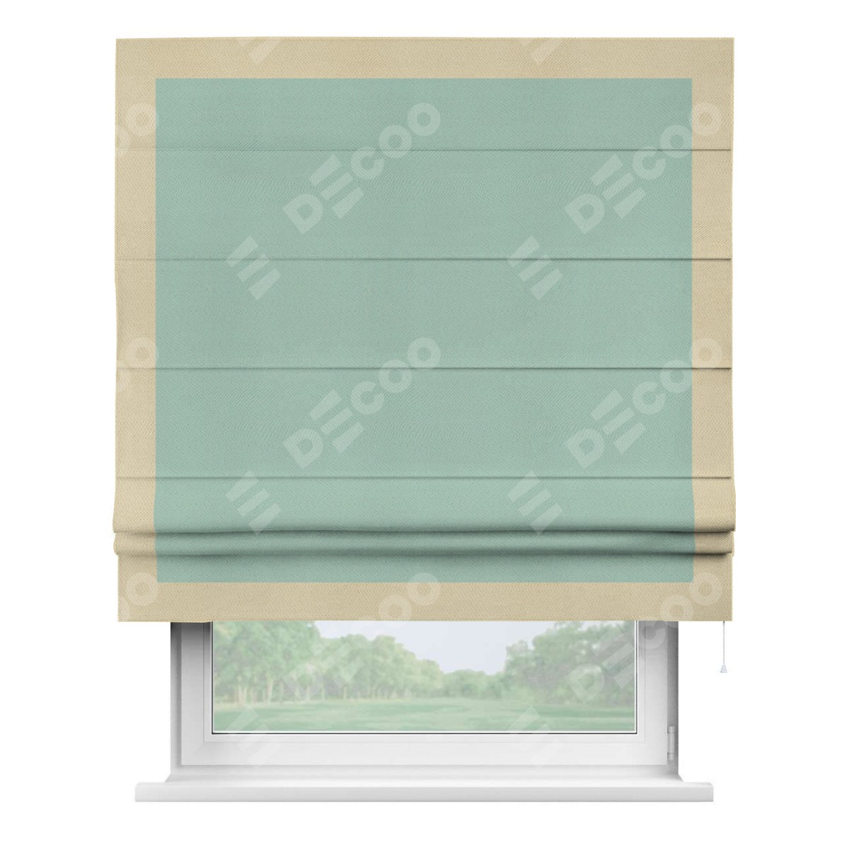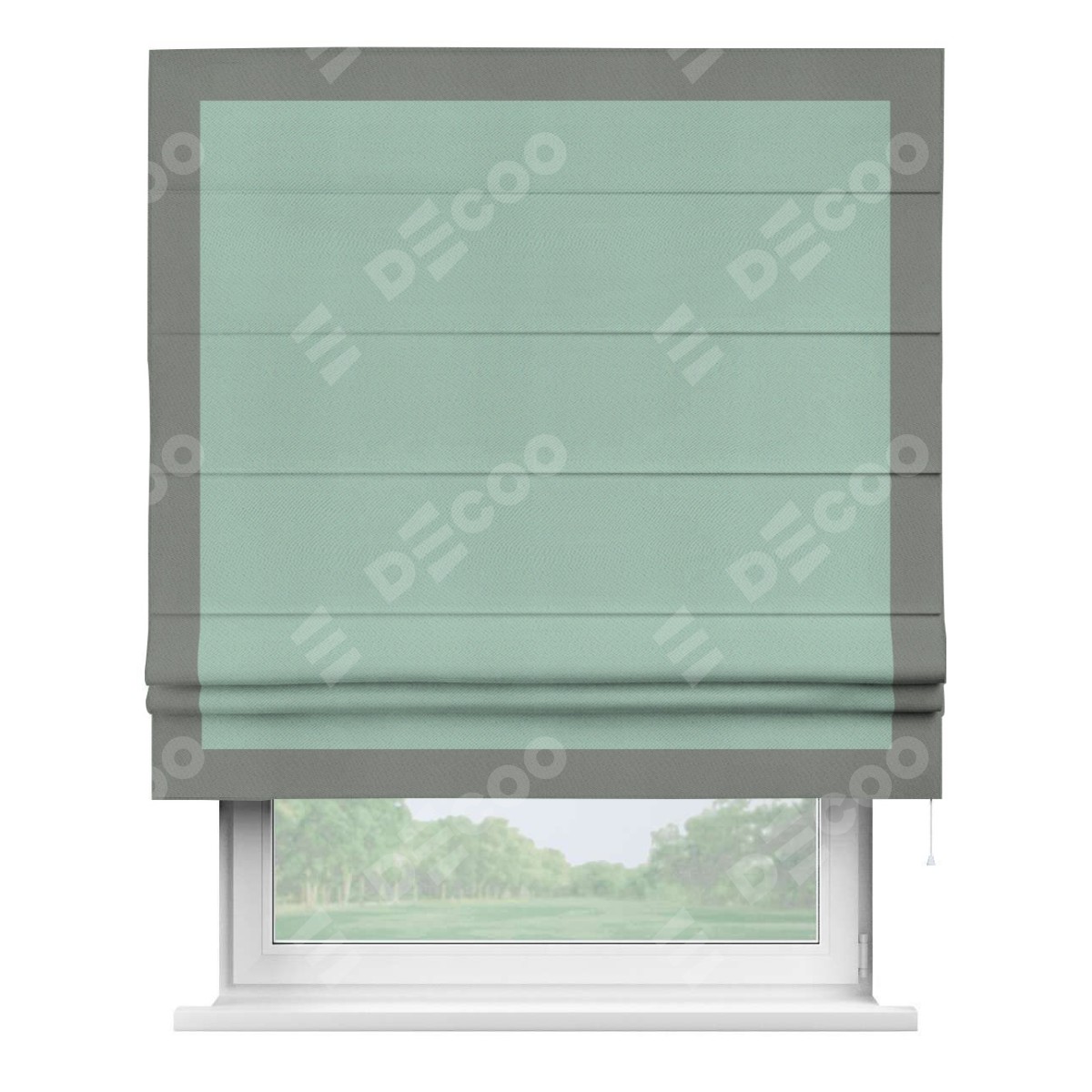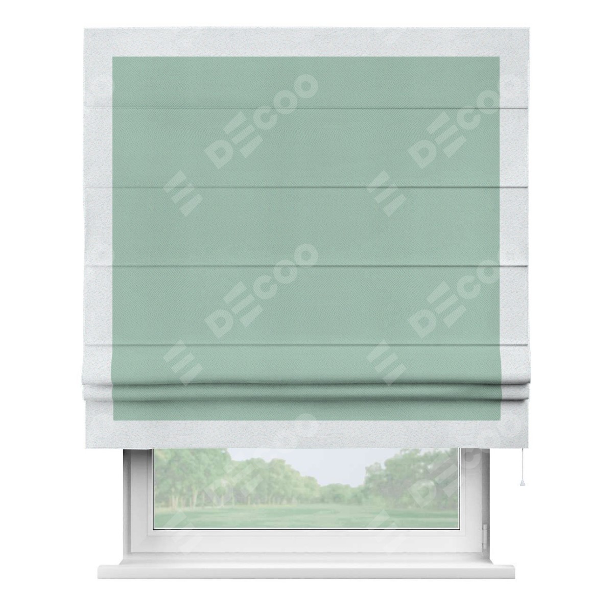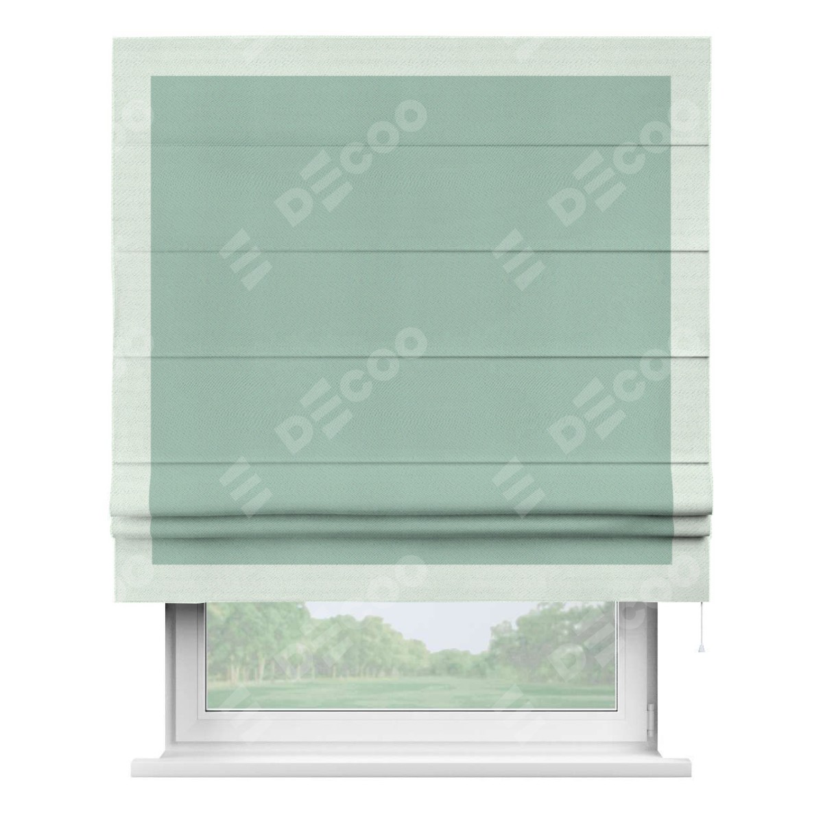 Римская штора производителя «Cortin», используется для проёма, пошита из ткани блэкаут однотонный ментоловый, артикул ткани 29584. Отделка шторы кантом «Чесс», ткань для канта используется из блэкаута однотонного разной расцветки на выбор. Имеет универсальный механизм и подходит для монтажа: на потолок, на стену и в нишу.