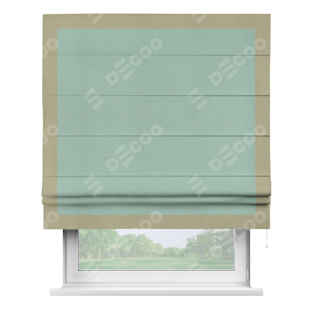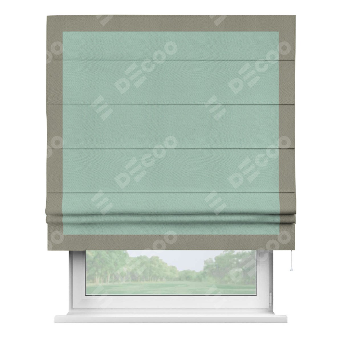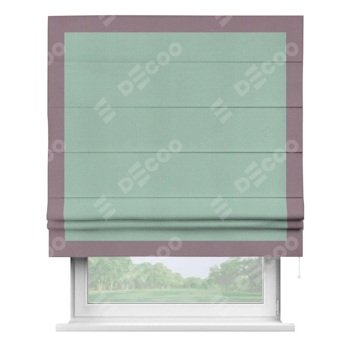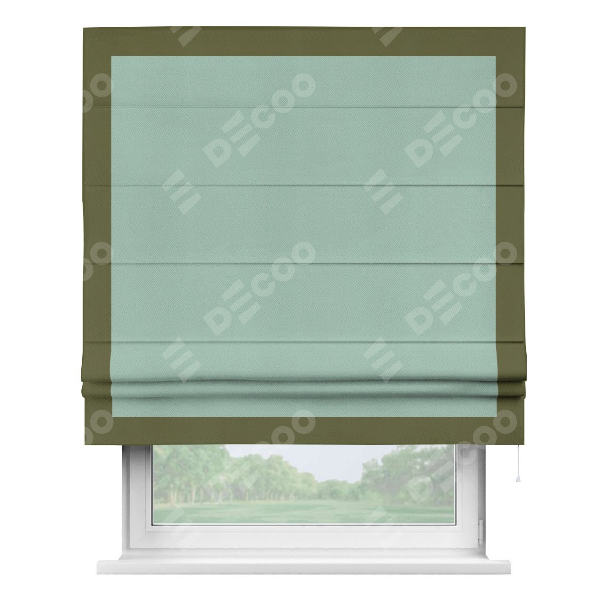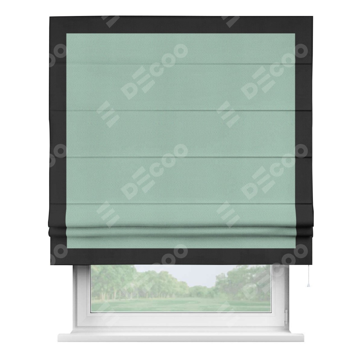 Римская штора производителя «Cortin», используется для проёма, пошита из ткани блэкаут однотонный ментоловый, артикул ткани 29584. Отделка шторы кантом «Чесс», ткань для канта используется из блэкаута однотонного разной расцветки на выбор. Имеет универсальный механизм и подходит для монтажа: на потолок, на стену и в нишу.