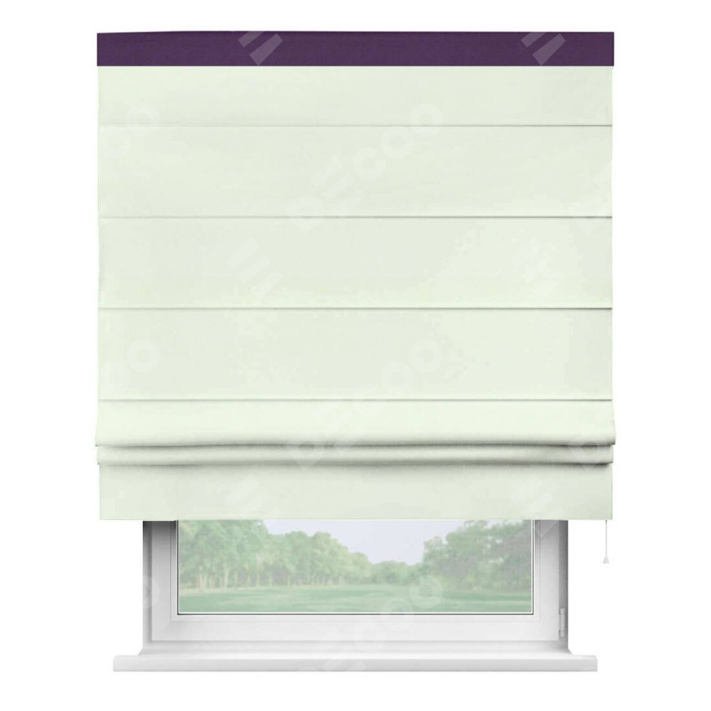Римская штора производителя «Cortin», используется для проёма, пошита из ткани вельвет кремовый, артикул ткани 85524. Отделка шторы кантом «Кинг», ткань для канта используется из вельвета разной расцветки на выбор. Имеет универсальный механизм и подходит для монтажа: на потолок, на стену и в нишу.