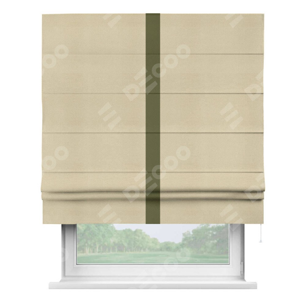 Римская штора производителя «Cortin», используется для проёма, пошита из ткани блэкаут однотонный милано латте, артикул ткани 05. Отделка шторы кантом «Хайвей», ткань для канта используется из блэкаута однотонного разной расцветки на выбор. Имеет универсальный механизм и подходит для монтажа: на потолок, на стену и в нишу.