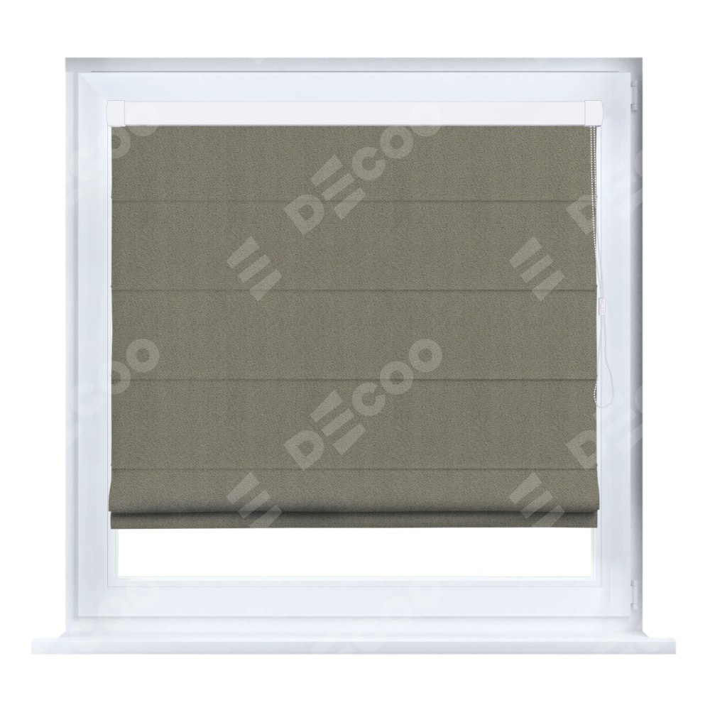 Римская штора кассетного типа, производителя «Cortin», устанавливается только на пластиковые окна и прилегает к стеклопакету, пошита из ткани из ткани блэкаут тиснение с блеском графитовый, артикул 34648. Изнаночная сторона материала черного цвета, что обеспечивает необходимую светонепроницаемость.