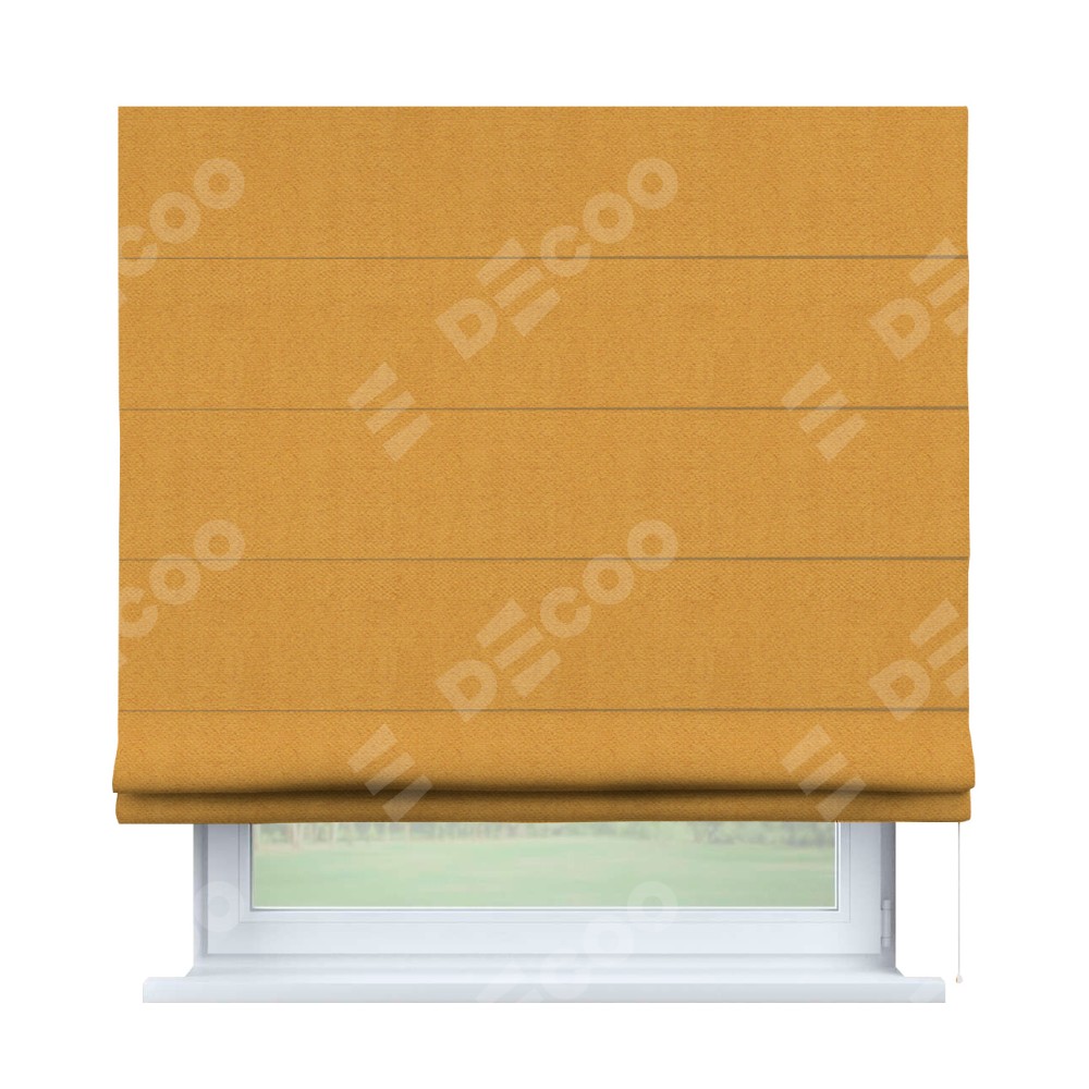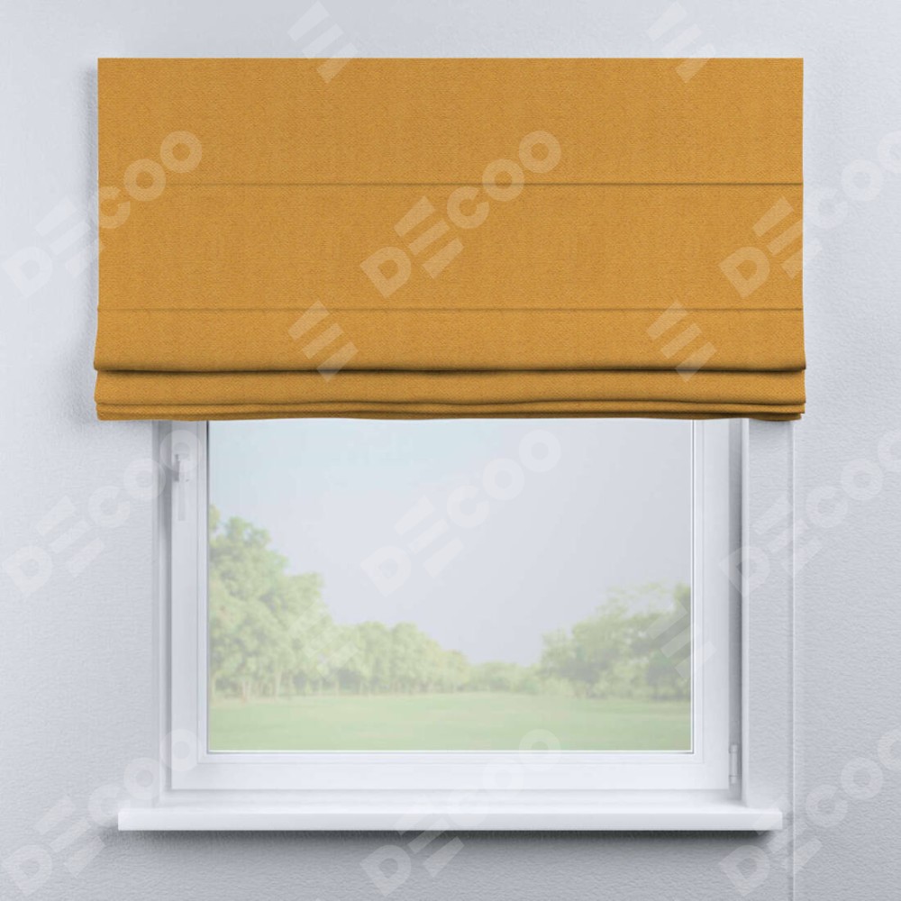 Римская штора производителя «Cortin», используется для проёма, пошита из ткани блэкаут тиснение с блеском золотой, артикул ткани 34626. Изнаночная сторона материала черного цвета, что обеспечивает необходимую светонепроницаемость. Имеет универсальный механизм и подходит для монтажа: на потолок, на стену и в нишу.