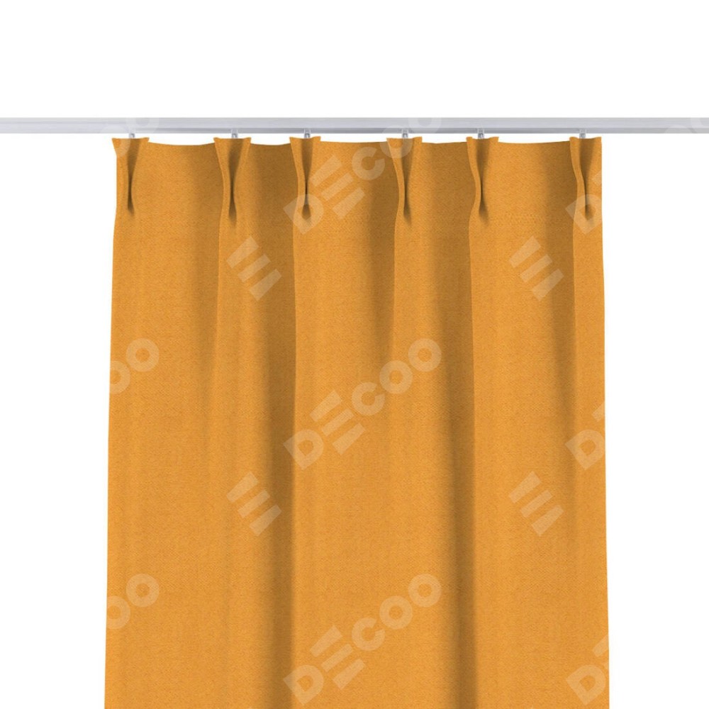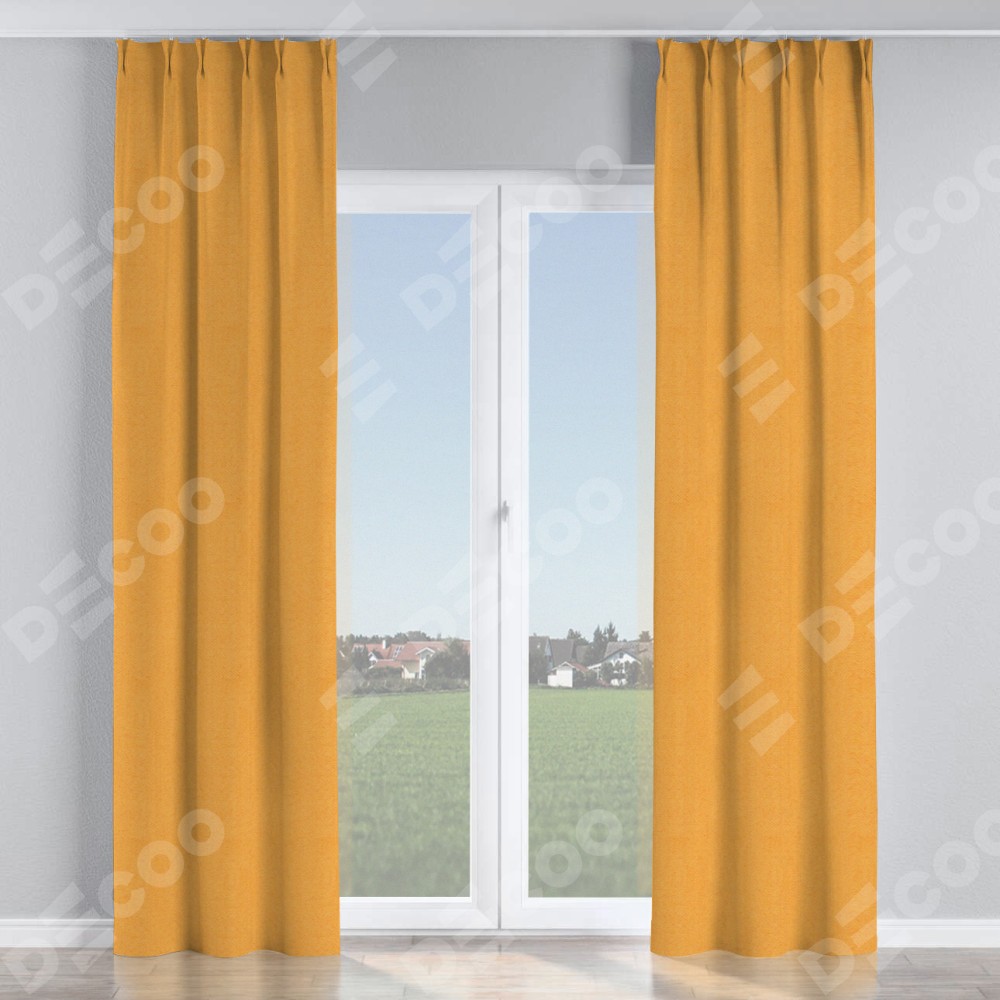 Комплект прямых штор, от производителя «Cortin», пошиты из ткани блэкаут с блеском золотой, артикул ткани 34626. С изнаночной стороны в верхней части штор пристрачивается шторная лента с декоративными складками «Кустик». Обратная сторона основного материала черного цвета, что обеспечивает необходимую светонепроницаемость. Для создания элегантных складок прямые шторы шьются по стандарту с коэффициентом 1:2 (на 100 см. ширины проёма 200 см. ширины ткани).