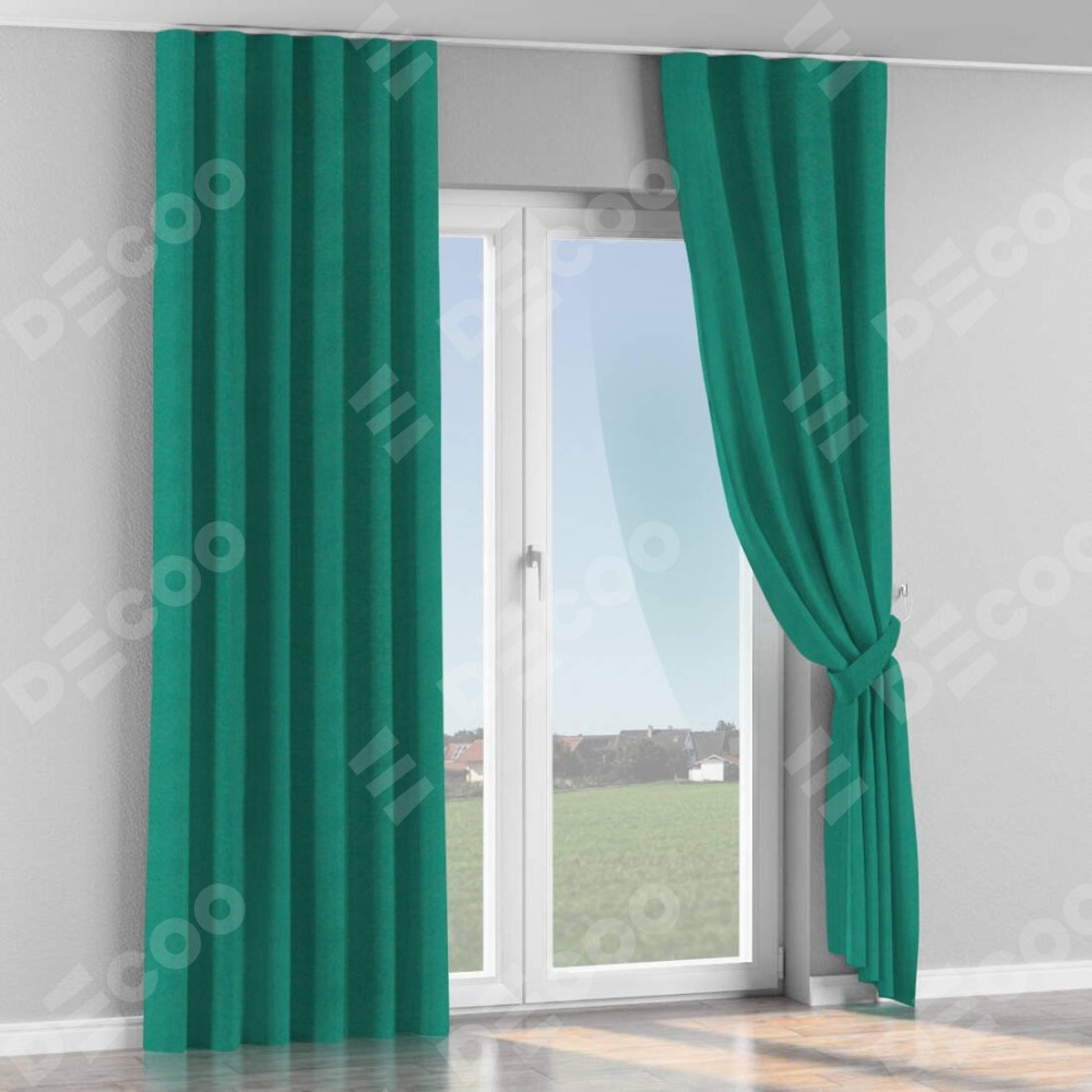 Комплект прямых штор, от производителя «Cortin», пошиты из ткани блэкаут с блеском изумрудный, артикул ткани 34628. С изнаночной стороны в верхней части штор пристрачивается шторная лента с декоративными складками «Волна». Обратная сторона основного материала черного цвета, что обеспечивает необходимую светонепроницаемость. Для создания элегантных складок прямые шторы шьются по стандарту с коэффициентом 1:2 (на 100 см. ширины проёма 200 см. ширины ткани).