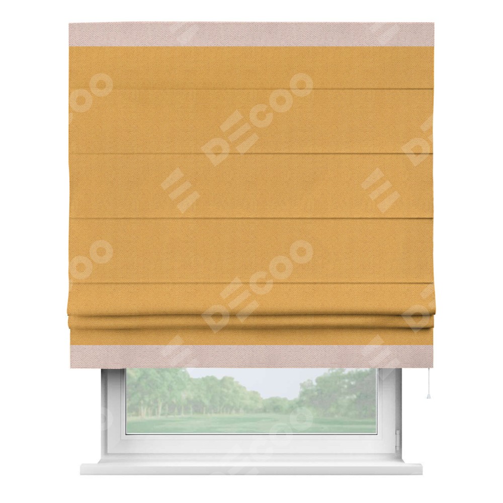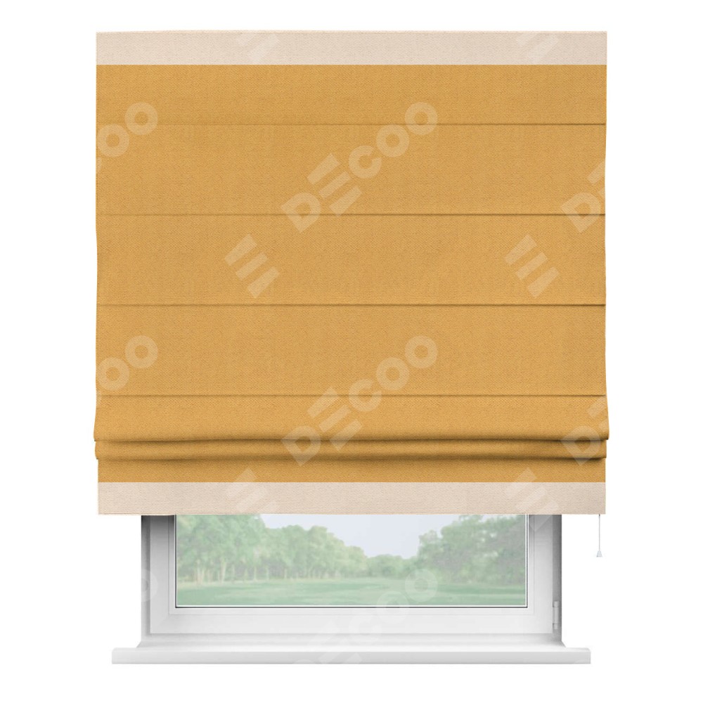 Римская штора «Кортин» с кантом Горизонт, для проема, ткань блэкаут с блеском золотой