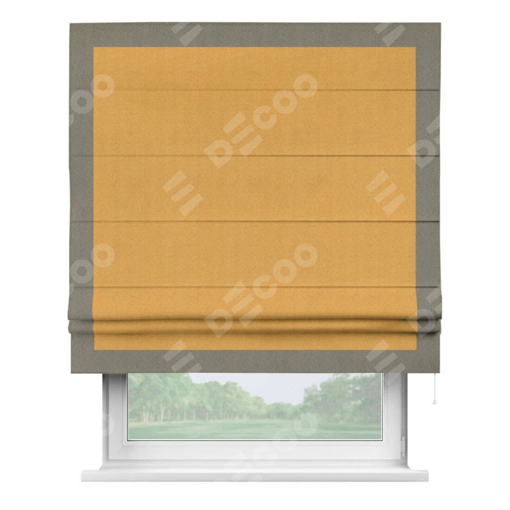 Римская штора «Кортин» с кантом Чесс, для проема, ткань блэкаут с блеском золотой