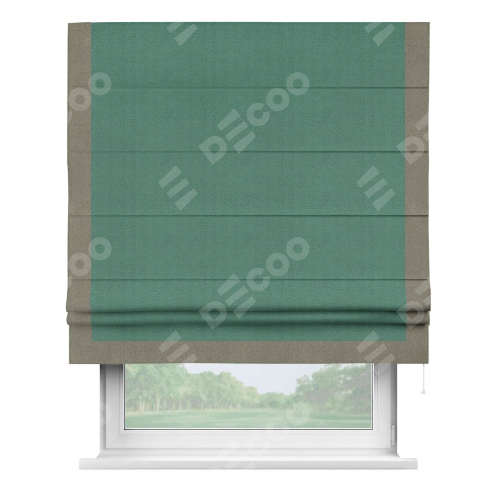 Римская штора «Кортин» с кантом Виктория, для проема, ткань блэкаут с блеском изумрудный