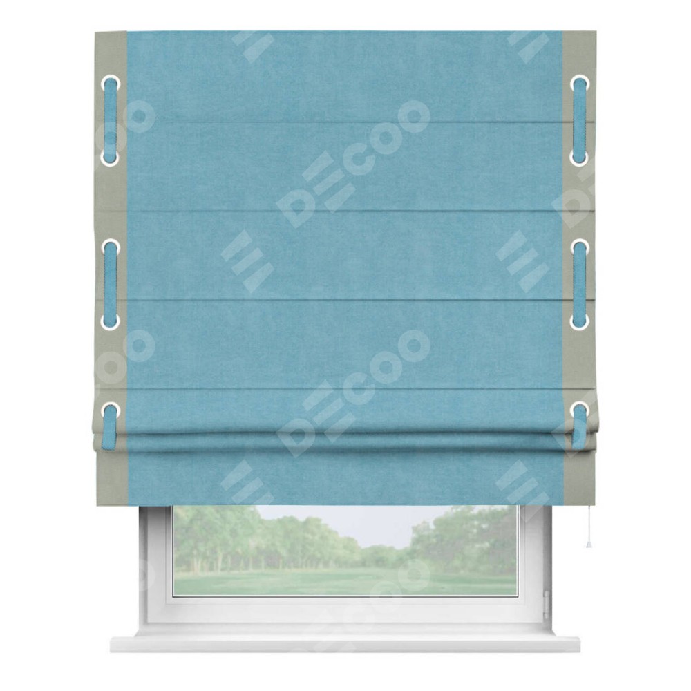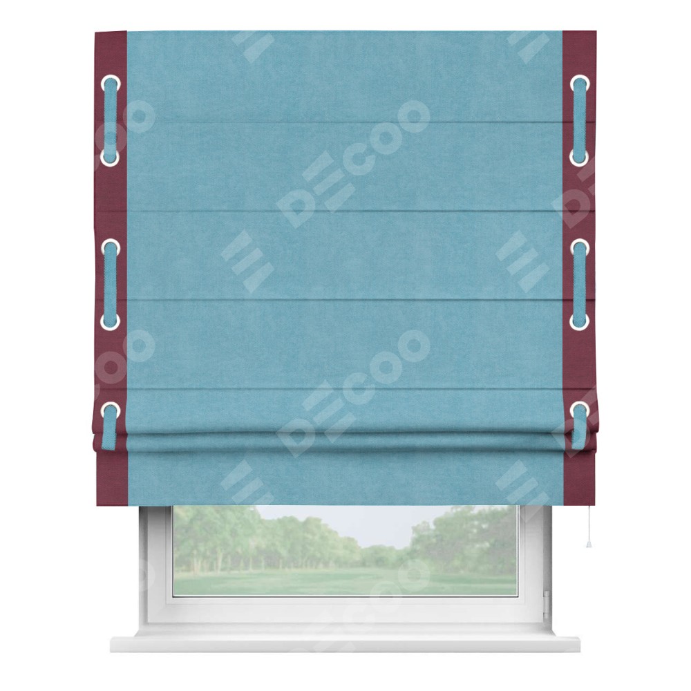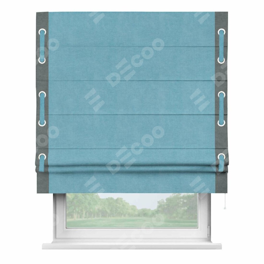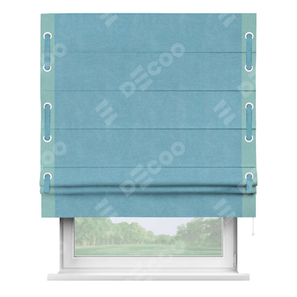 Римская штора «Кортин» с кантом Стрим Дуо (люверсы с пояском), для проема, ткань вельвет ментоловый