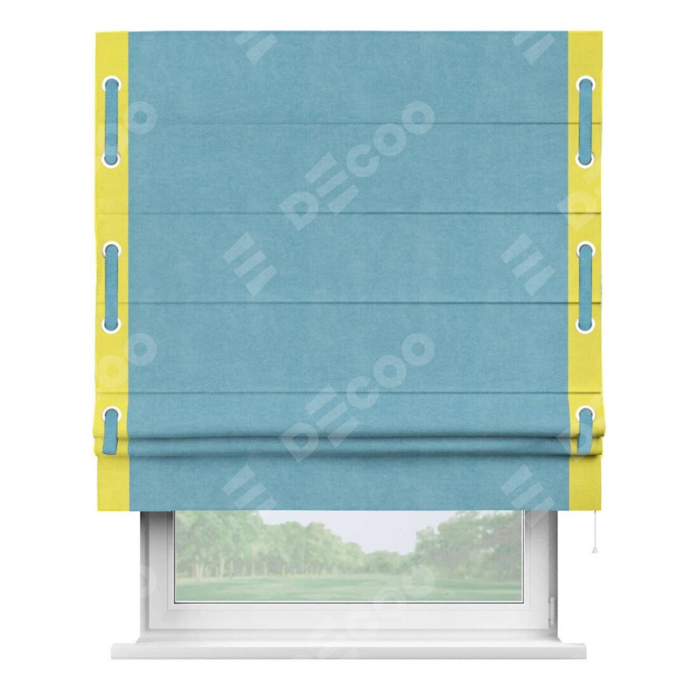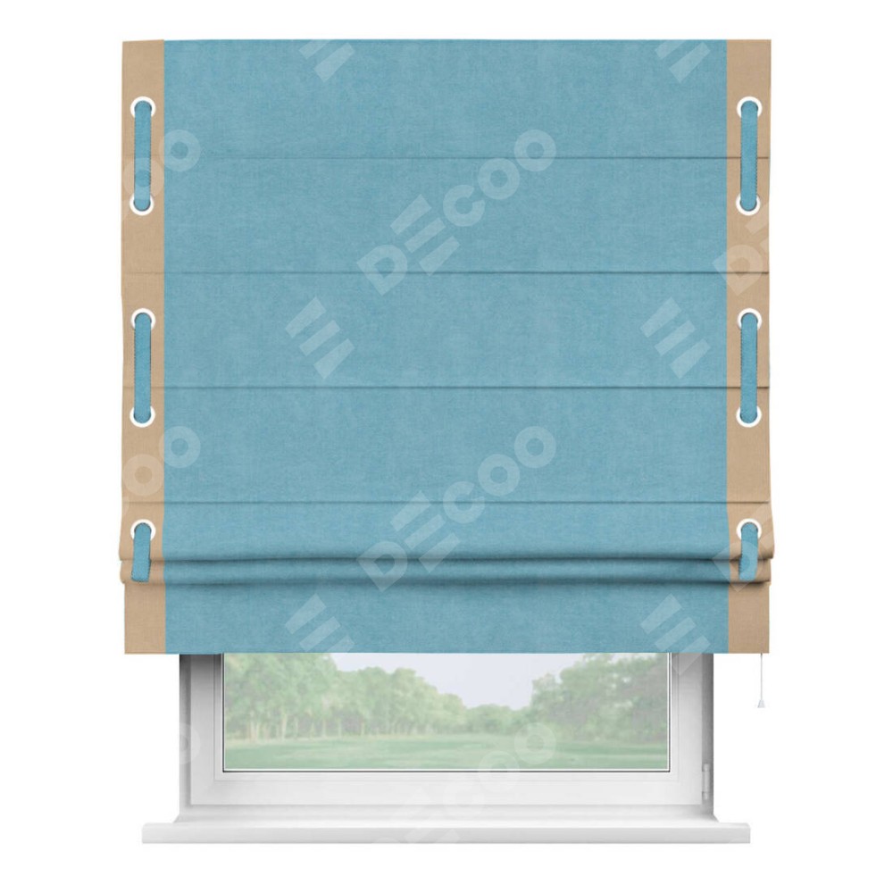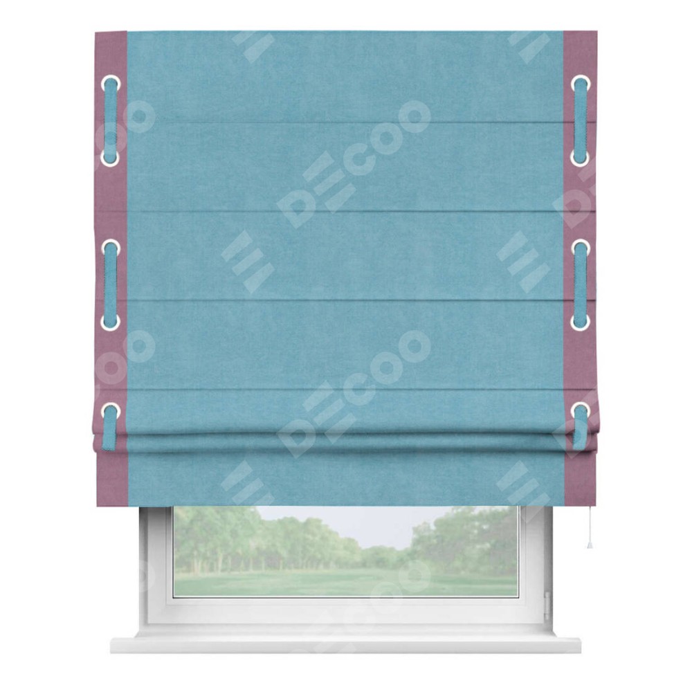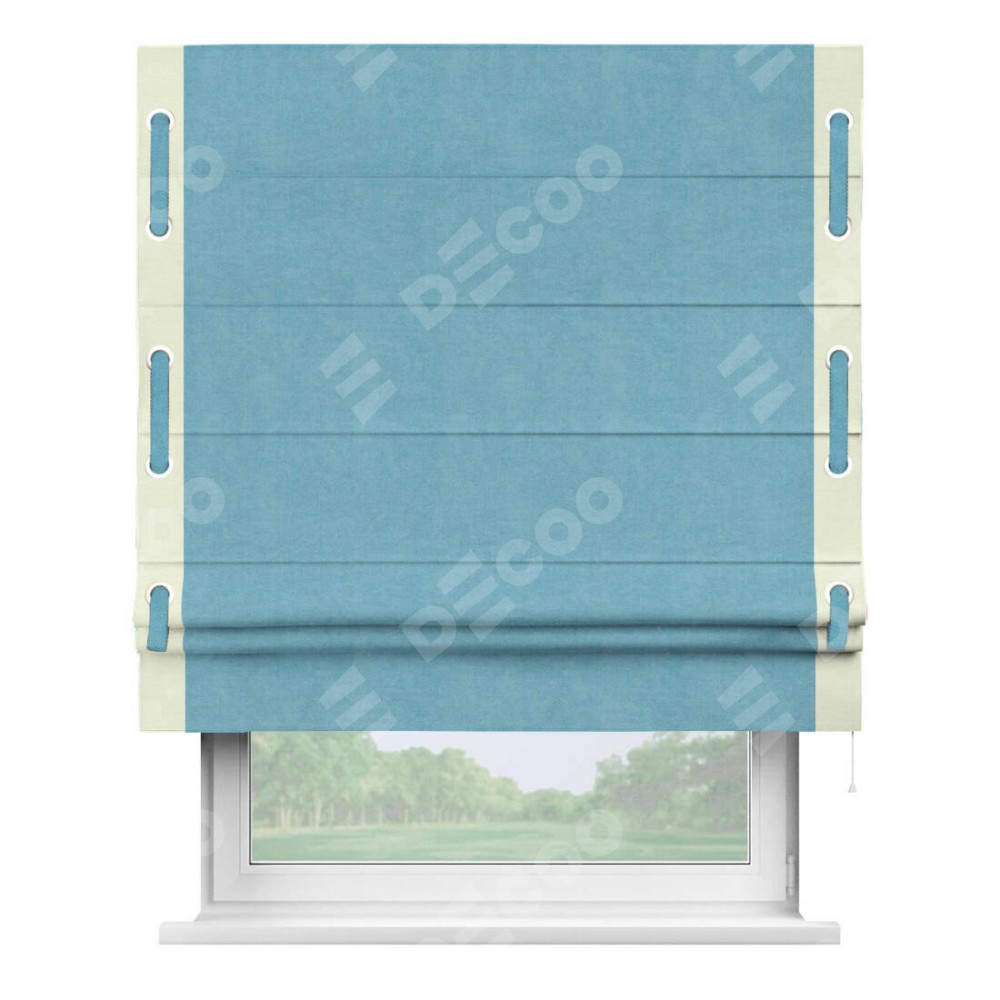 Римская штора «Кортин» с кантом Стрим Дуо (люверсы с пояском), для проема, ткань вельвет ментоловый