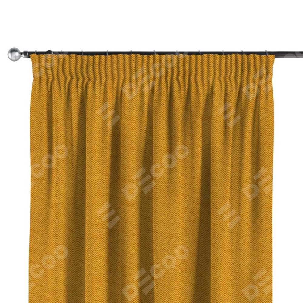 Комплект прямых штор, от производителя «Cortin», пошиты из ткани твид блэкаут медово-желтый, артикул ткани 21641. С изнаночной стороны в верхней части штор пристрачивается шторная лента с декоративными складками «Карандаш». Для создания элегантных складок прямые шторы шьются по стандарту с коэффициентом 1:2 (на 100 см. ширины проёма 200 см. ширины ткани).