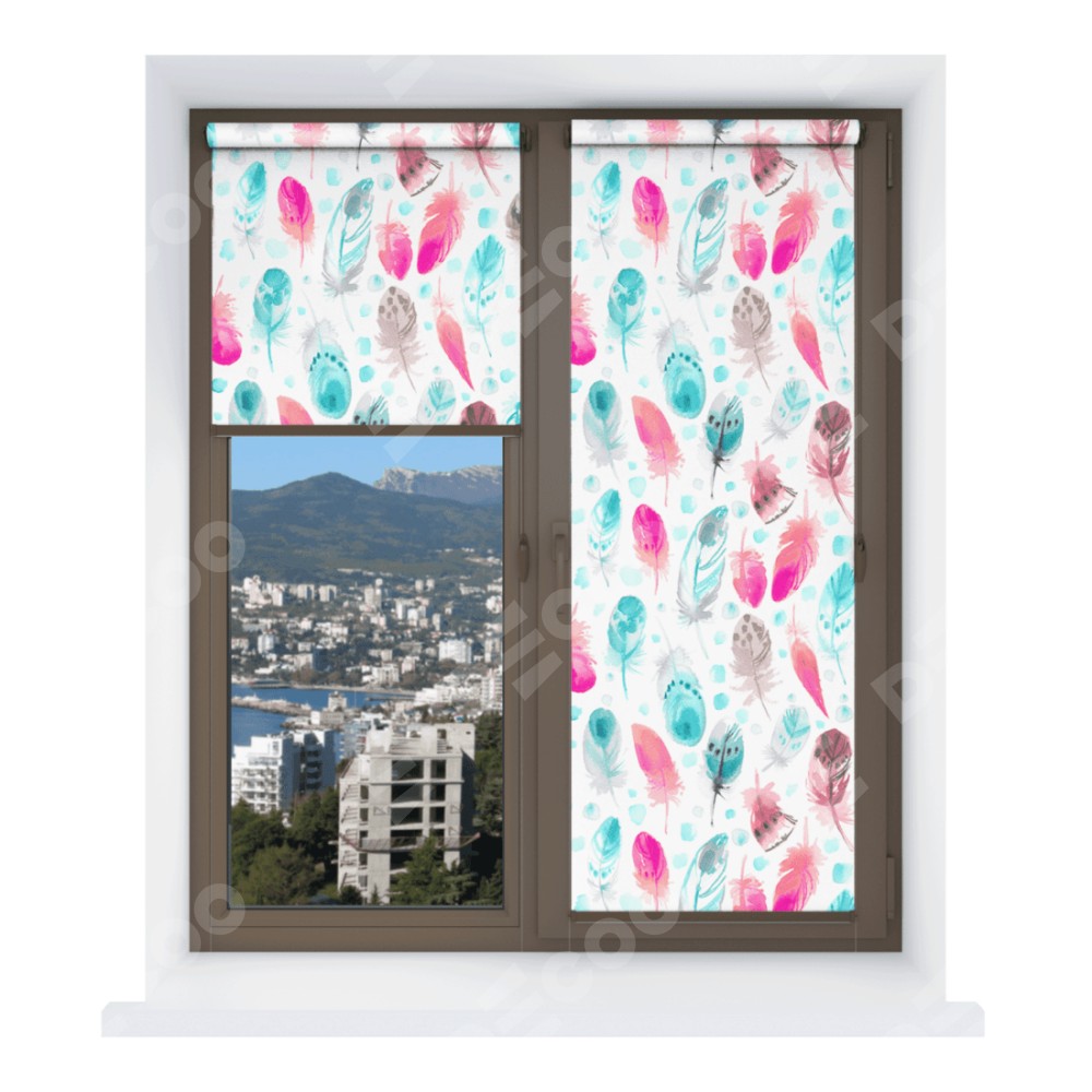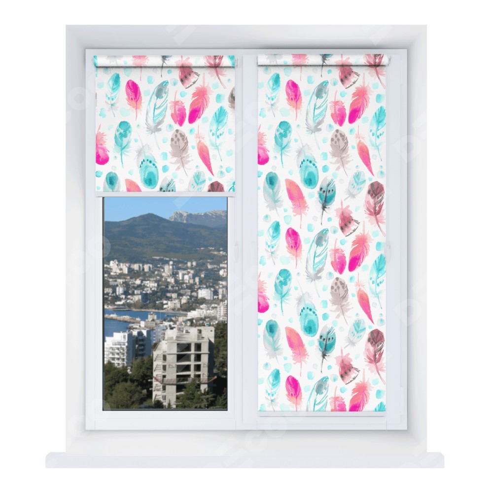 Рулонная штора Мини с принтом Перья отлично подойдёт для интерьера: для балкона, детская и для дачи.