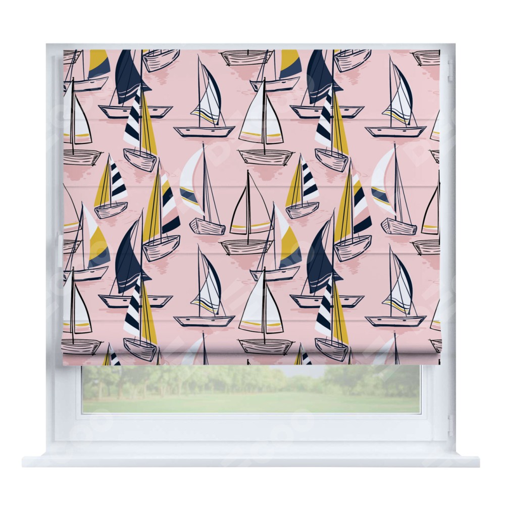 Римская штора производителя «Cortin», устанавливается на створку окна, пошита из ткани блэкаут с нанесением сублимационной печати «Парусная регата». Штора шьётся по индивидуальным размерам, для данного типа римской шторы возможная ширина от 35 до 150 см., высота до 250 см.