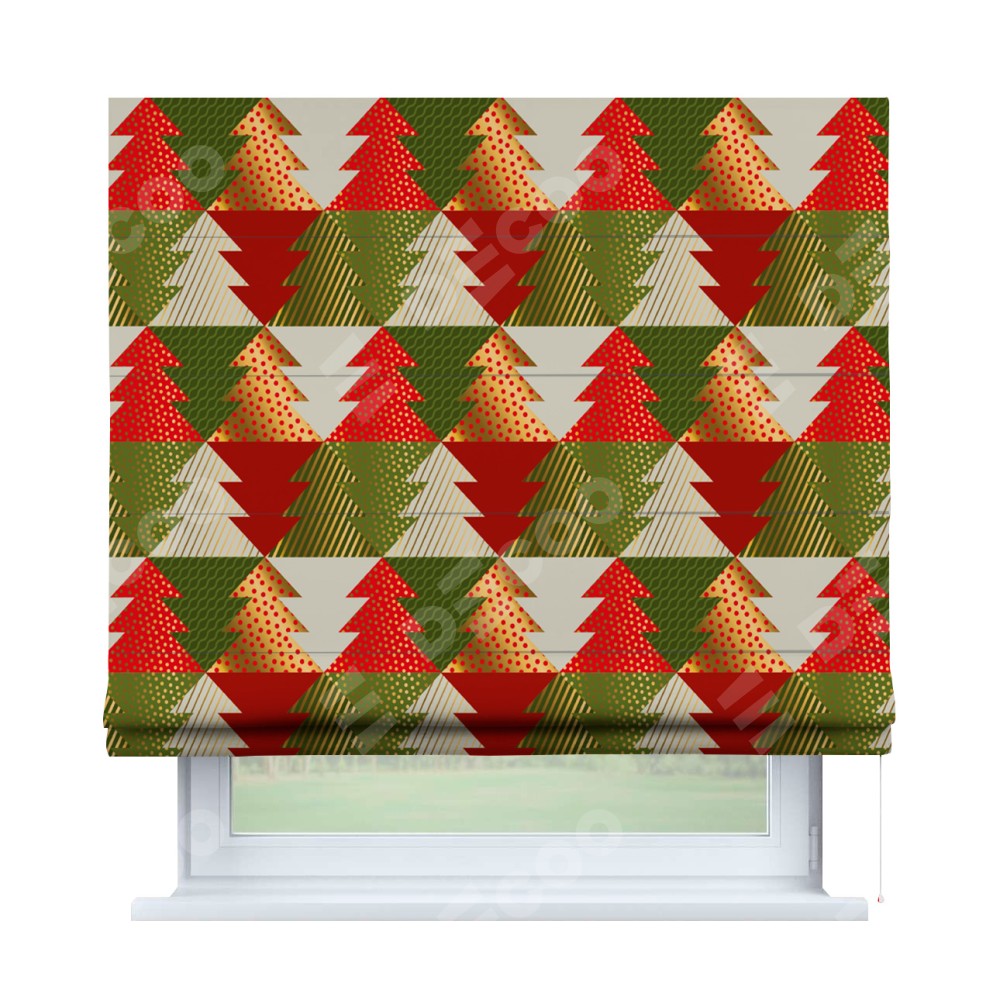Римская штора производителя «Cortin», используется для проёма, пошита из ткани блэкаут с нанесением сублимационной печати «Новогоднее украшение». Имеет универсальный механизм и подходит для монтажа: на потолок, на стену и в нишу.