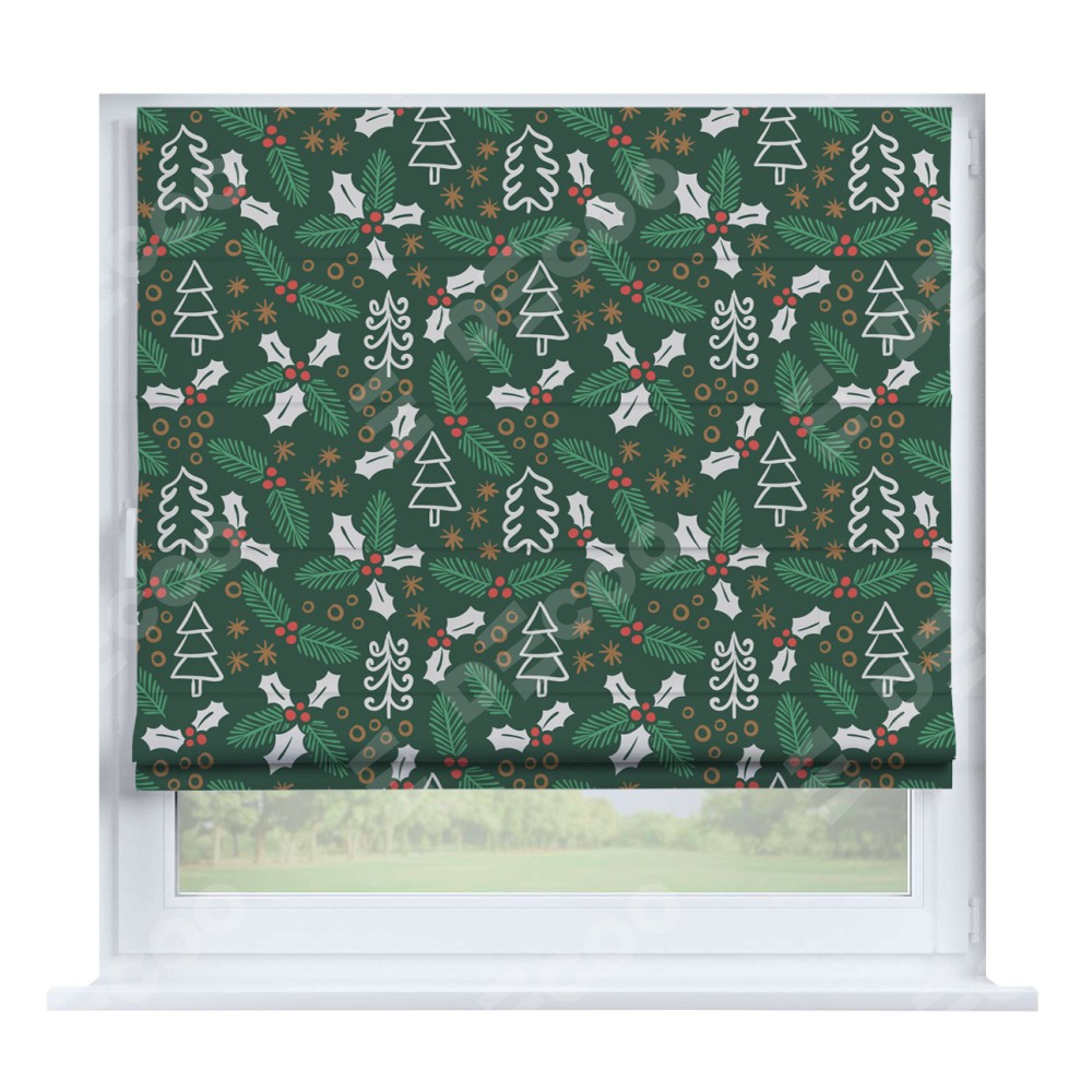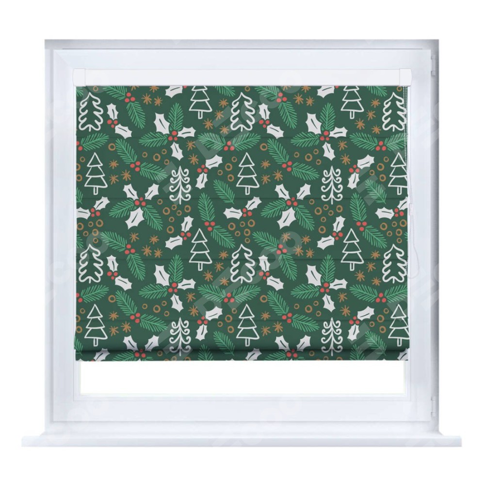 Римская штора производителя «Cortin», устанавливается на створку окна, пошита из ткани блэкаут с нанесением сублимационной печати «Рождественский узор». Штора шьётся по индивидуальным размерам, для данного типа римской шторы возможная ширина от 35 до 150 см., высота до 250 см.