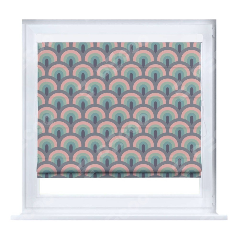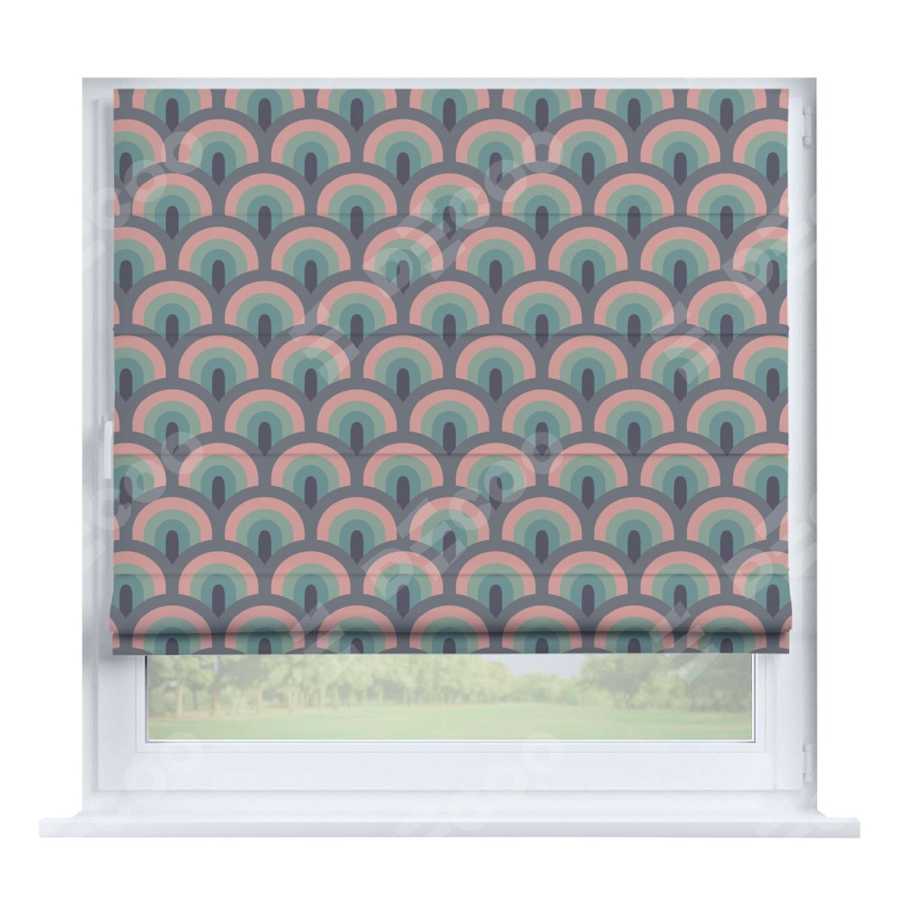 Римская штора производителя «Cortin», устанавливается на створку окна, пошита из ткани блэкаут с нанесением сублимационной печати «Ретро орнамент». Штора шьётся по индивидуальным размерам, для данного типа римской шторы возможная ширина от 35 до 150 см., высота до 250 см.