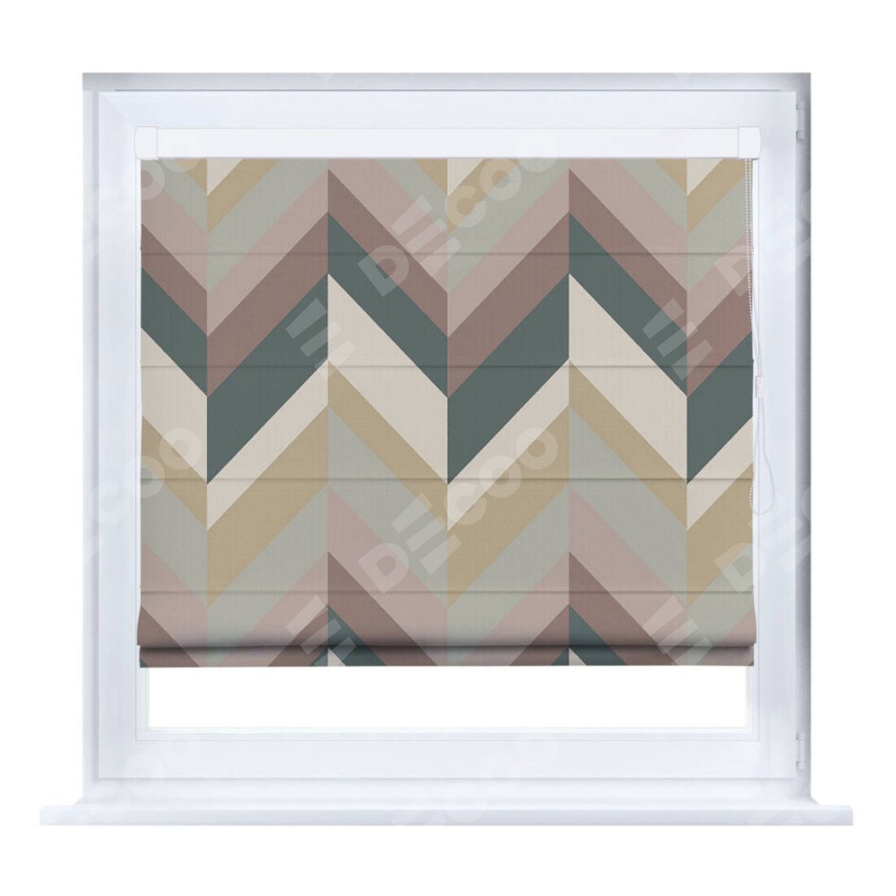 Римская штора производителя «Cortin», устанавливается на створку окна, пошита из ткани блэкаут с нанесением сублимационной печати «Шеврон Авеню». Штора шьётся по индивидуальным размерам, для данного типа римской шторы возможная ширина от 35 до 150 см., высота до 250 см.